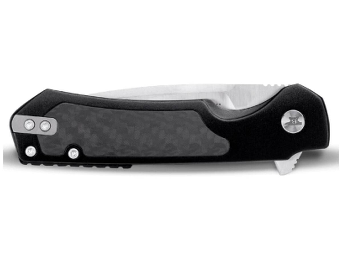 Рукоять выполнена из прочного текстурированного материала G10, обеспечивающего удобный и уверенный хват в любых условиях. Нож оснащён удобным механизмом открытия с помощью флиппера и надёжным лайнерлоком для безопасного использования.