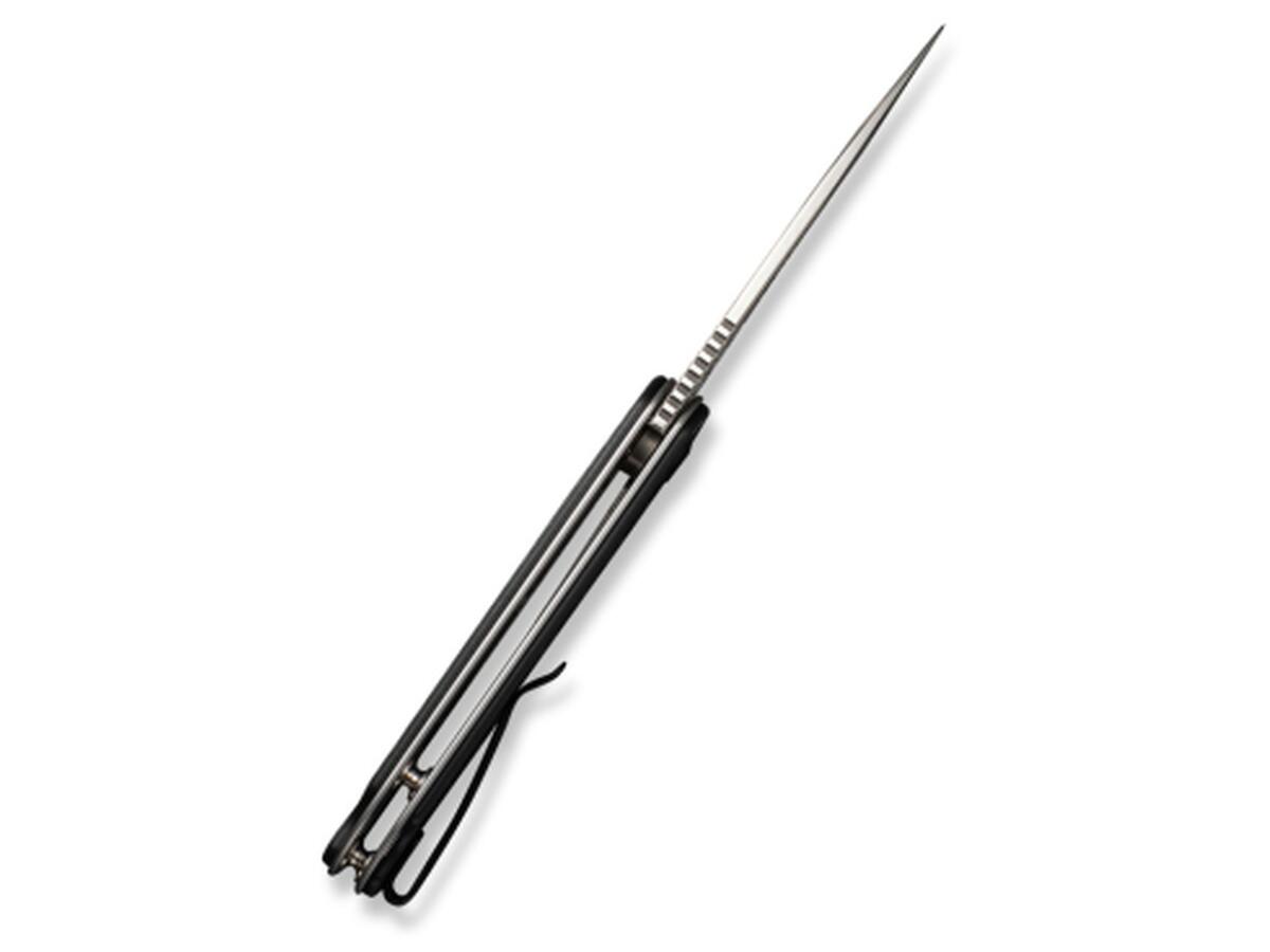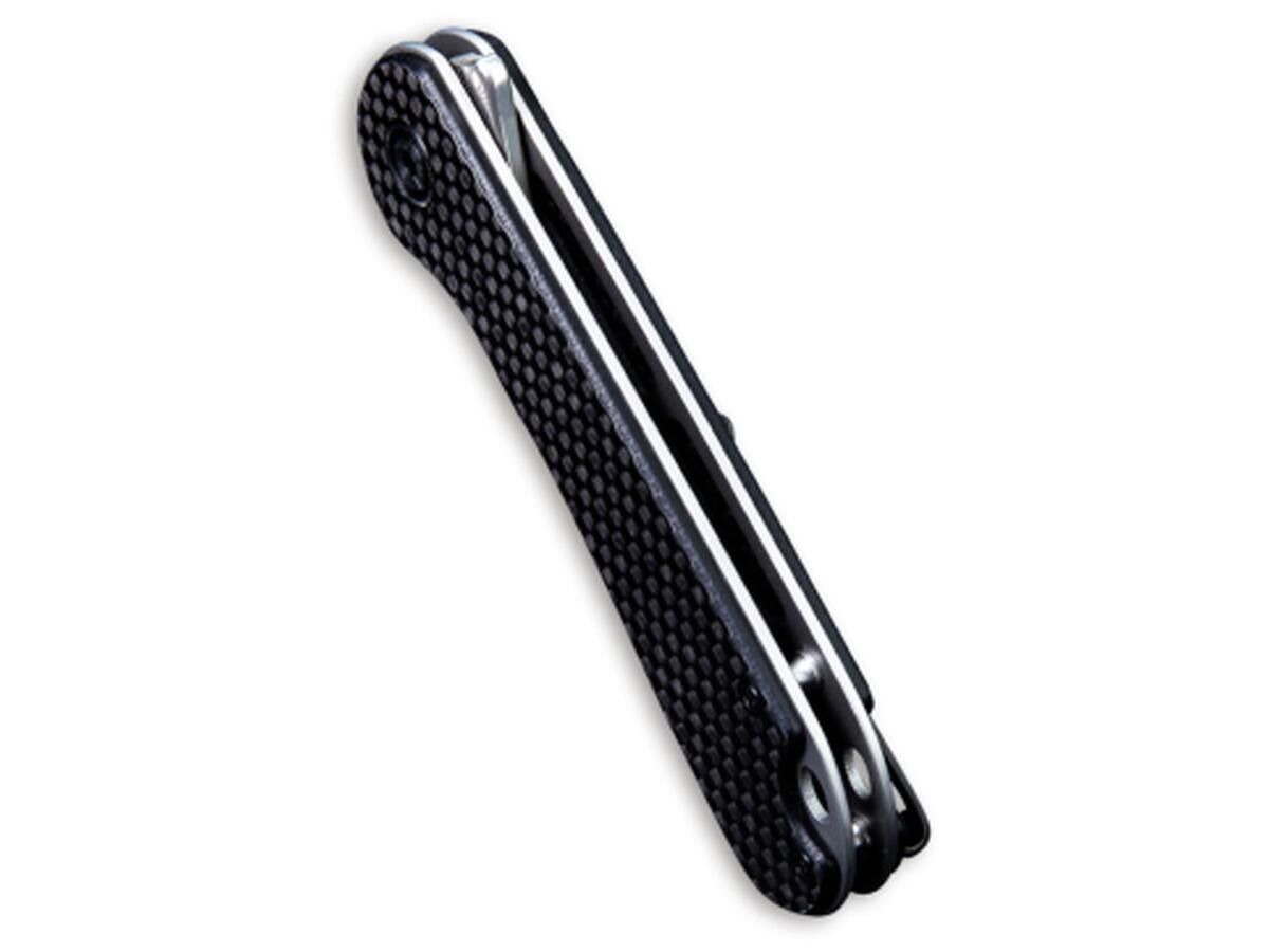 Ручка со стальными элементами, изготовлена из материала G10, который характеризуется высокой прочностью и лёгкостью. Он изготовлен из стекловолокна и синтетической смолы. Благодаря лёгкой текстуре отлично лежит в руке и обеспечивает хорошее сцепление.