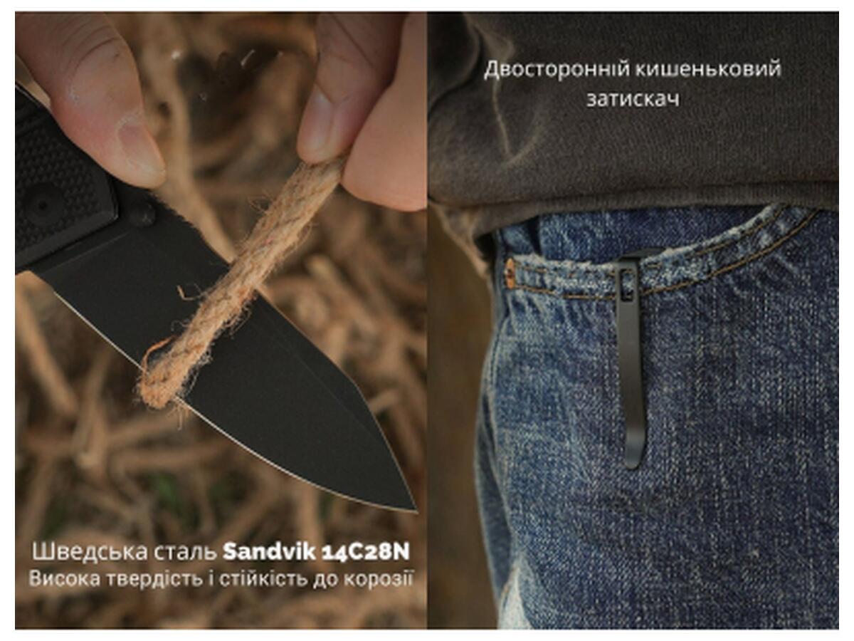 - материал клинка - шведская нержавеющая сталь Sandvik 14C28N;