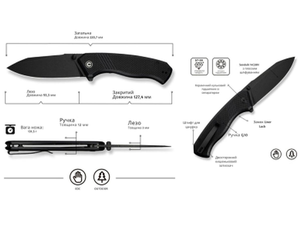 Нож Civivi Placoid, Darkwash, черный G10 (C23079-1)