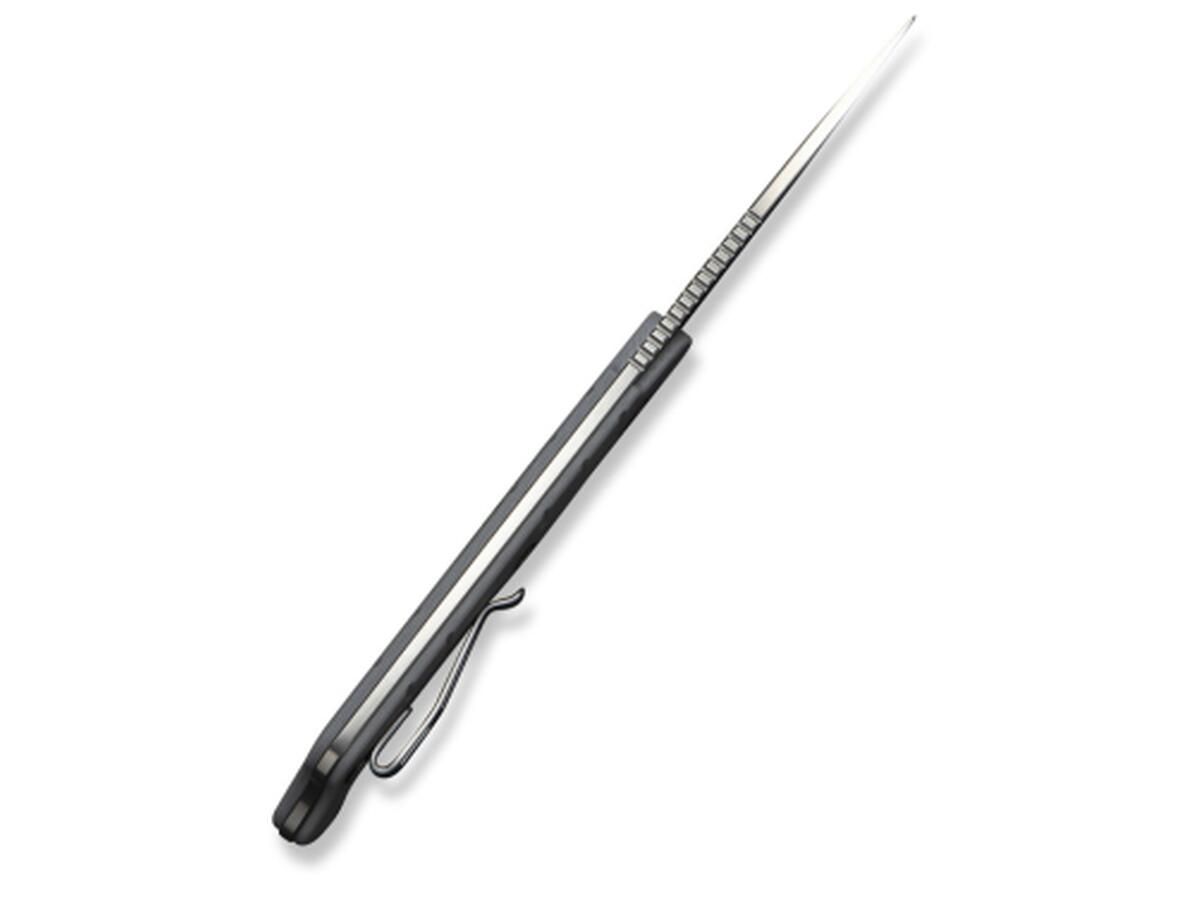 В хвосте рукояти закреплена клипса из нержавеющей стали, ориентированная на Tip-Down ношение. Зажим обеспечивает прочную фиксацию инструмента в кармане или на снаряжении, не выходя за пределы габаритов. Положение клипсы можно менять под удобную руку — устанавливать с правой или левой стороны конструкции.