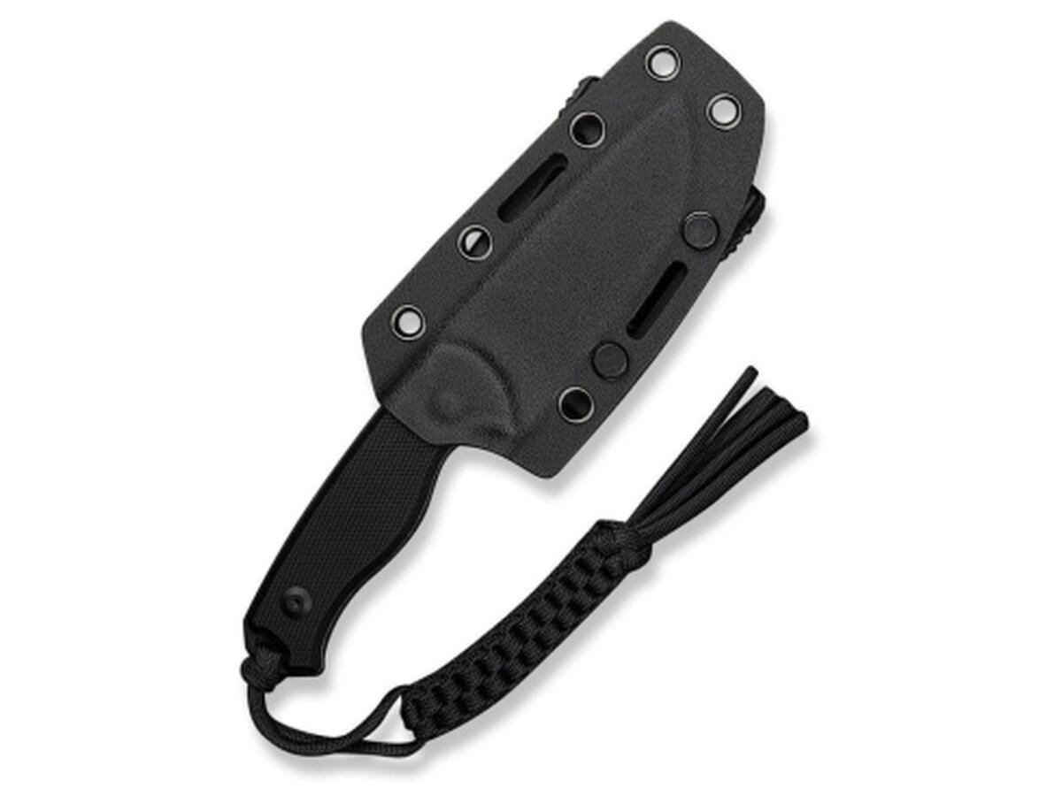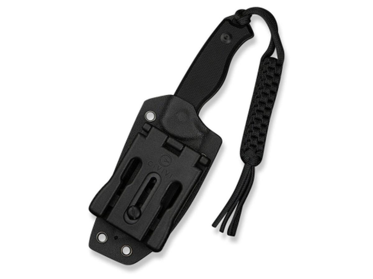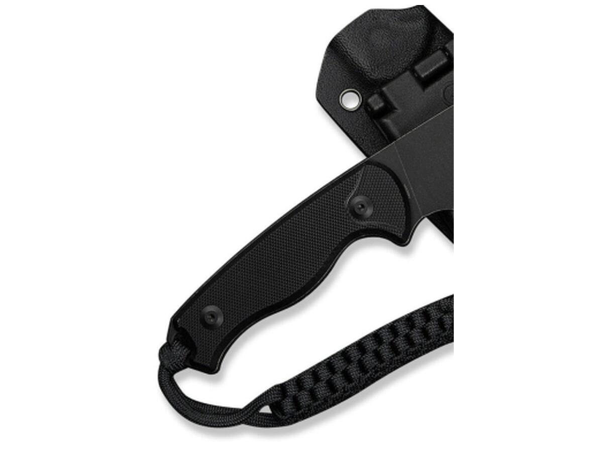 Хвостовая часть дополнена плетеным паракордом в качестве украшения. Комплект также включает ножны из кайдекса с зажимом, разработанным ножевым дизайнером Бобом Терзуола. Зажим с вращающейся системой фиксации позволяет устанавливать нож в наиболее удобном для вас положении: вертикально или горизонтально.
