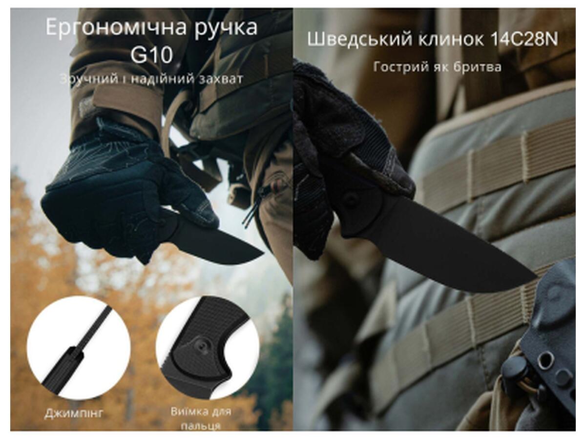 - Сталь Sandvik 14C28N в клинке. Это ножевая сталь шведского производства с высокой коррозионной стойкостью. Металл закален до 57-59 HRC, легок в обслуживании и надолго сохраняет остроту даже при интенсивной эксплуатации.