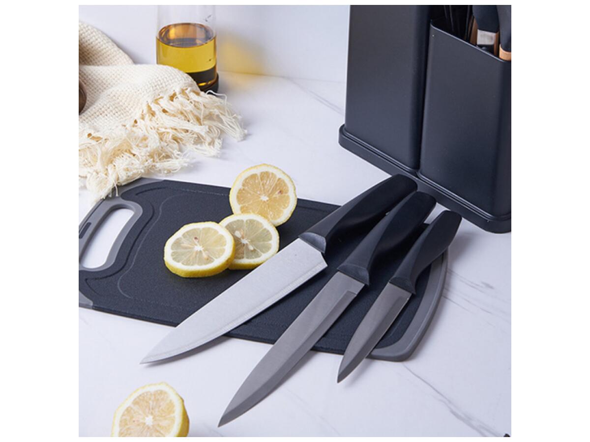Этот комплект из 19 предметов включает разнообразные ножи и аксессуары, которые станут незаменимыми помощниками при приготовлении пищи. Комплект поставляется с удобной подставкой для хранения, которая помогает поддерживать порядок и безопасность на кухне.