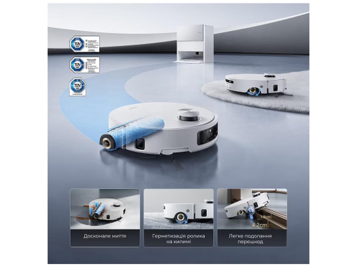 Робот-пылесос стерилизует свой ролик, промывая его горячей водой при температуре 100 градусов Цельсия (212 по Фаренгейту), эффективно удаляя жир и стойкие пятна, пока вы отдыхаете.