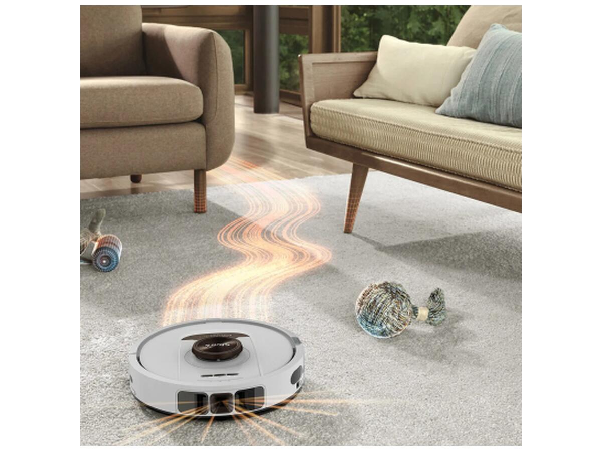 Робот оснащён лазерными датчиками и LiDAR-навигатором, создавая точную карту помещения и мгновенно реагируя на препятствия. Прибор адаптирует мощность всасывания в зависимости от покрытия пола, усиливая её для ковровых покрытий.