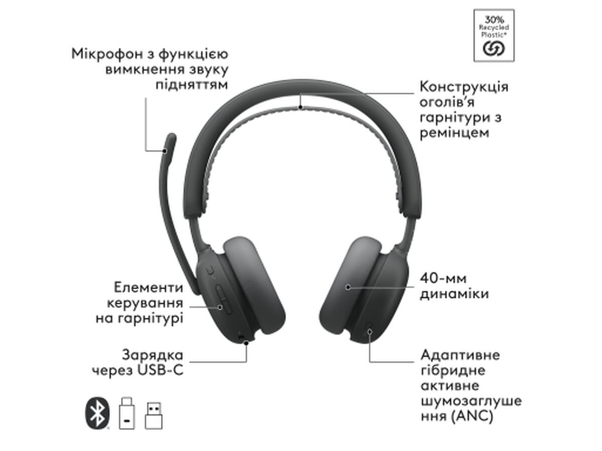 Наушники Logitech Zone Wireless 2 ES Busines Graphite (981-001498)
