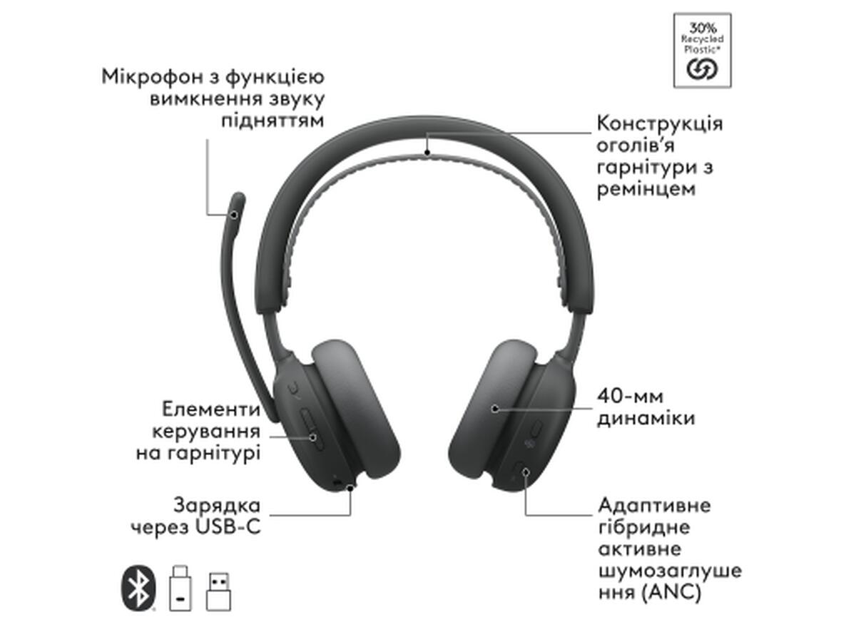 Наушники Logitech Zone Wireless 2 ES for Business Graphite (981-001493)