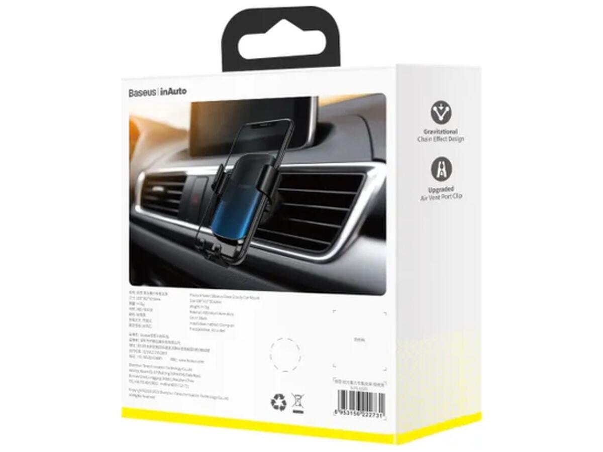 Baseus Glaze Gravity Car Mount легко кріпиться до вентиляційної решітки вашого автомобіля, що забезпечує зручний доступ до телефону і не заважає роботі інших систем автомобіля. Це дозволяє зручно використовувати телефон без необхідності постійно тримати його в руках.
