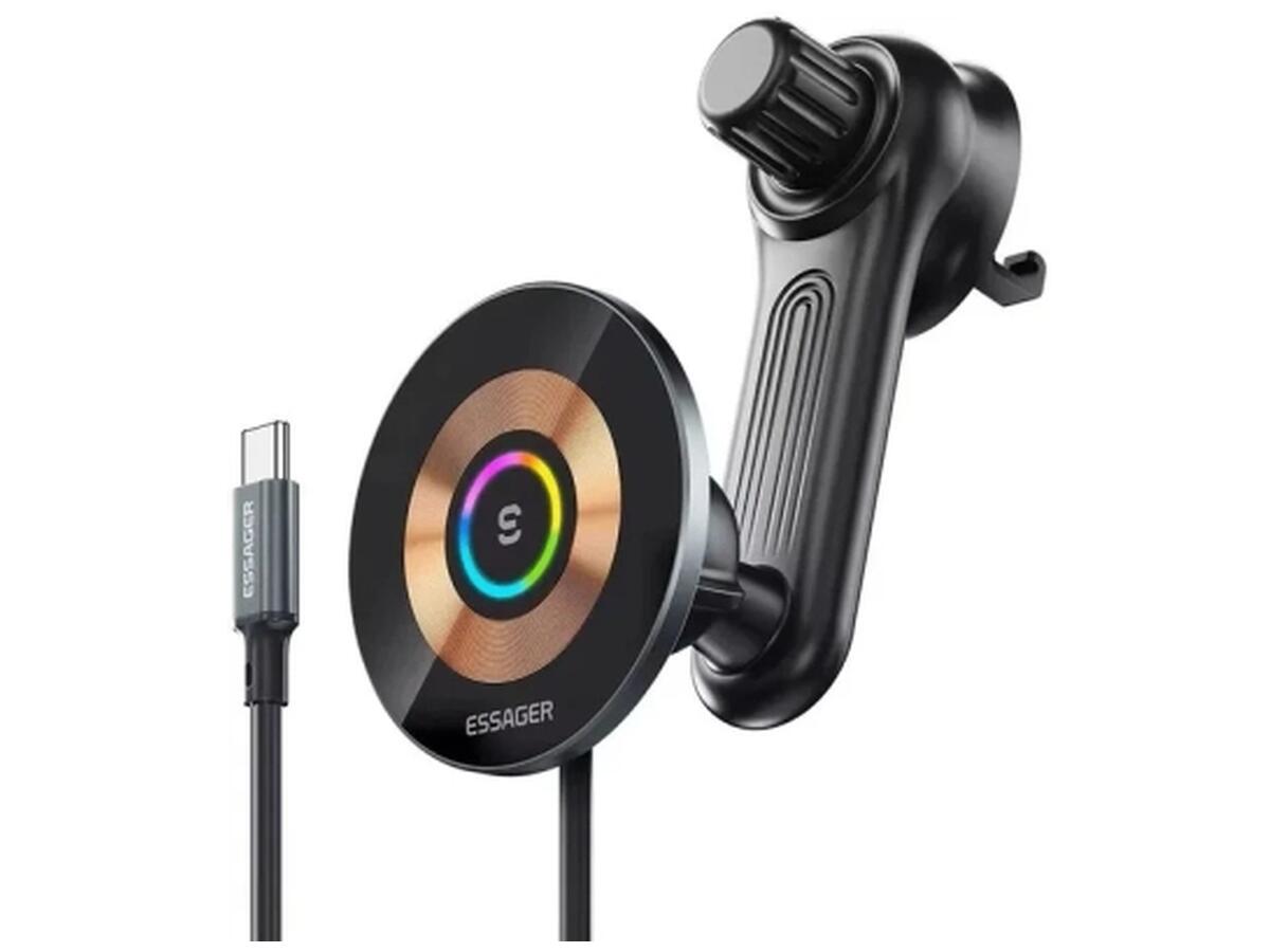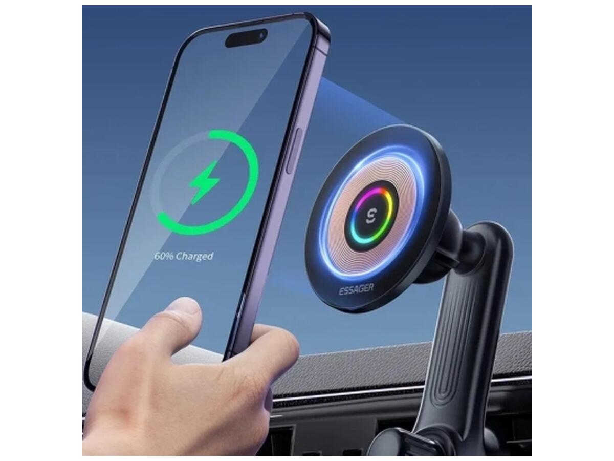Essager Arpege 15W Magnetic Wireless Car Charger — это продуманный автомобильный держатель, который не только надежно фиксирует смартфон, но и обеспечивает быструю беспроводную зарядку мощностью до 15 Вт. Магнитное крепление позволяет легко устанавливать и снимать телефон, а возможность поворота держателя обеспечивает комфортный угол обзора во время поездки.