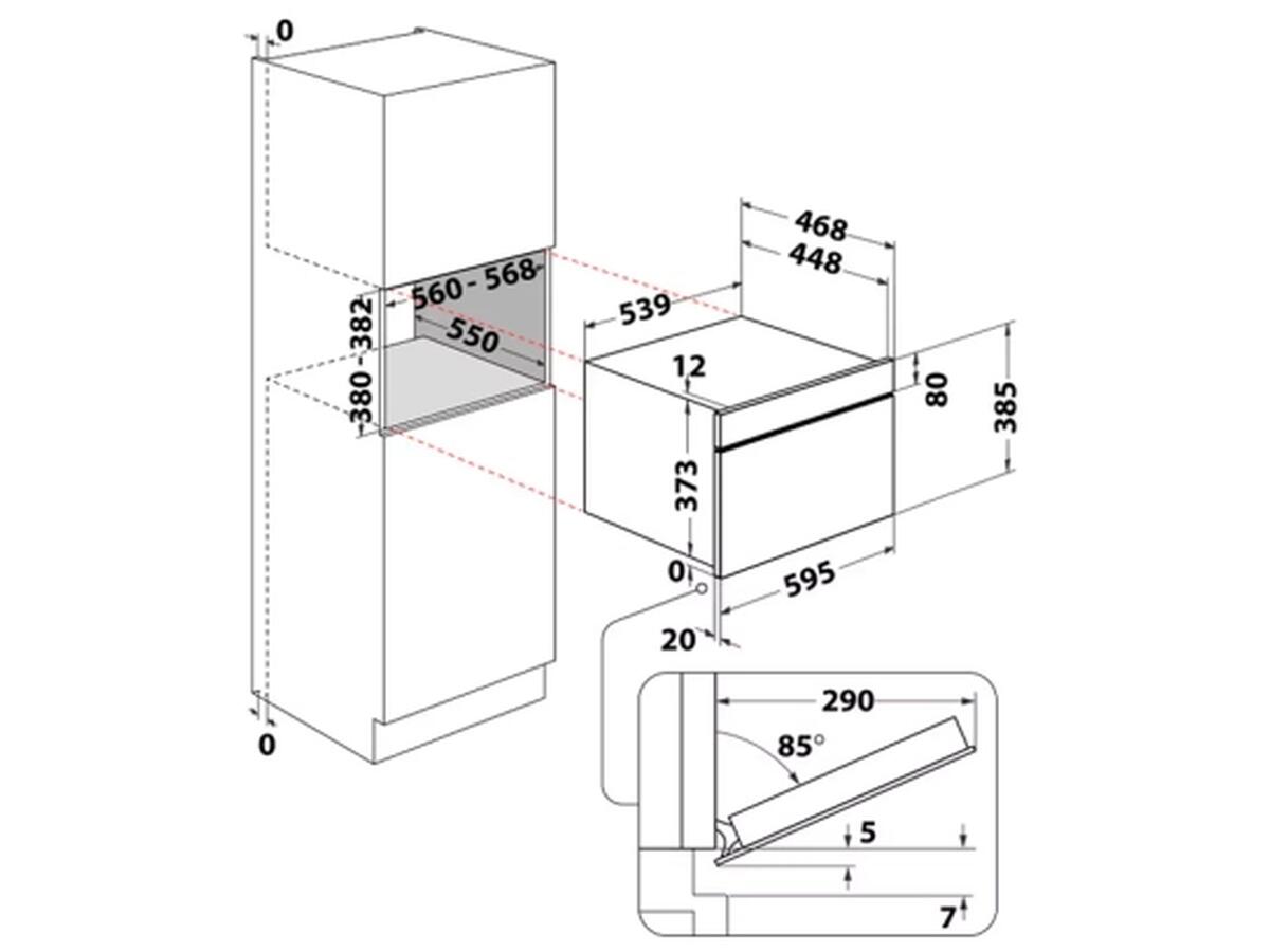 Размеры ниши для встраивания (ВxШxГ): 38-38.2 x 55.6-56.8 x 55 см