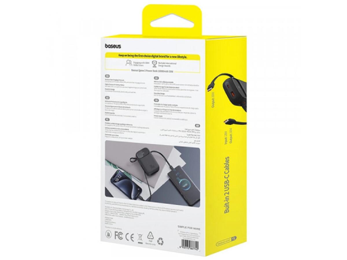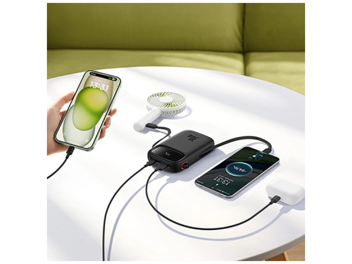 Повербанк Baseus Qpow 2 10000mAh 30W оснащён двумя выходными портами - USB Type-C, USB Type-А и двумя встроенными кабелями USB Type-C.