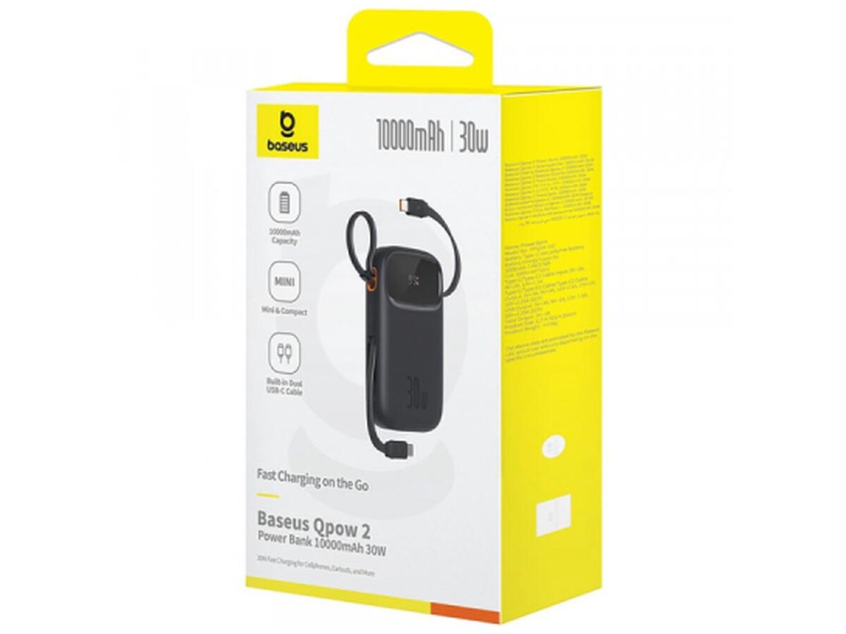 Батарея универсальная Baseus 10000mAh Qpow 2 30W PD/3.0, QC/3.0, w/built-in USB-C cable, Black (P10055008113)