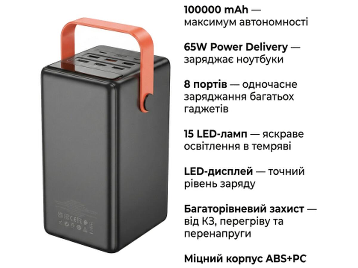 Батарея универсальная HOCO 100000mAh Max Centurion PD/65W, QC, LED Lamp, Black (DB03 / 714722)