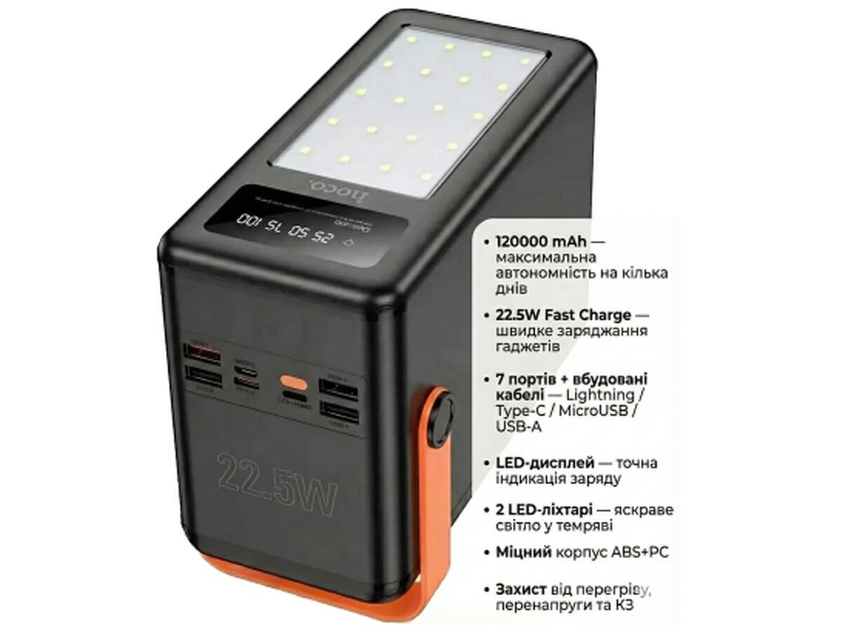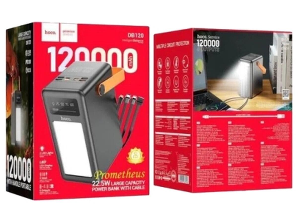 Батарея универсальная HOCO 120000mAh Prometheus 22.5W Fast Chardge, 2*LED lamp, Black (DB120 / 714723)