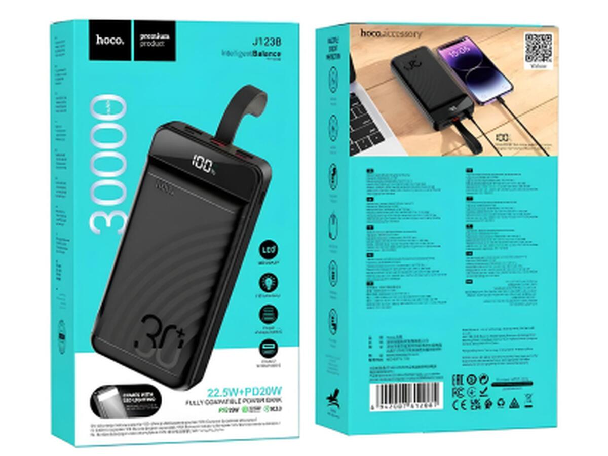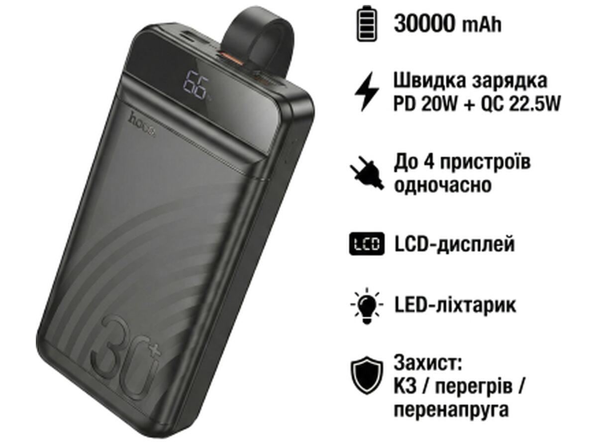 Батарея универсальная HOCO 30000mAh Element PD/20W, QC/22.5W, LED Lamp, Black (J123B / 714735)