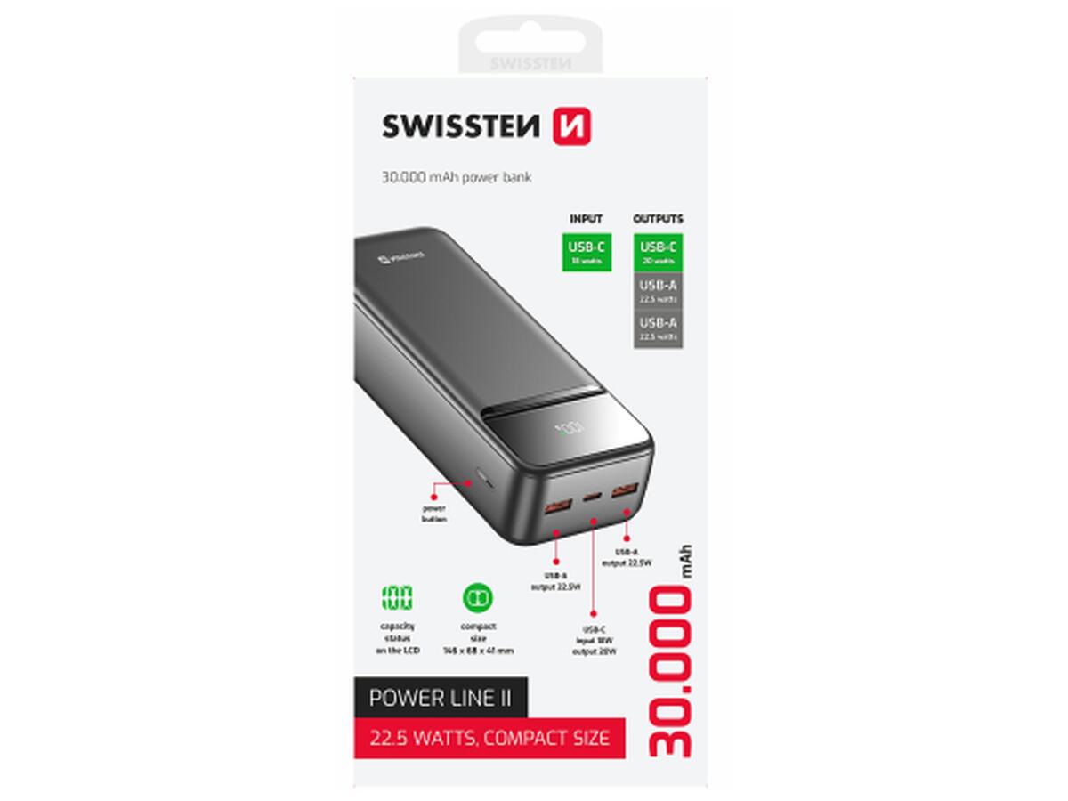 Батарея универсальная SWISSTEN 30000mAh POWER LINE II 22.5W PD QC Black (8595217490635)