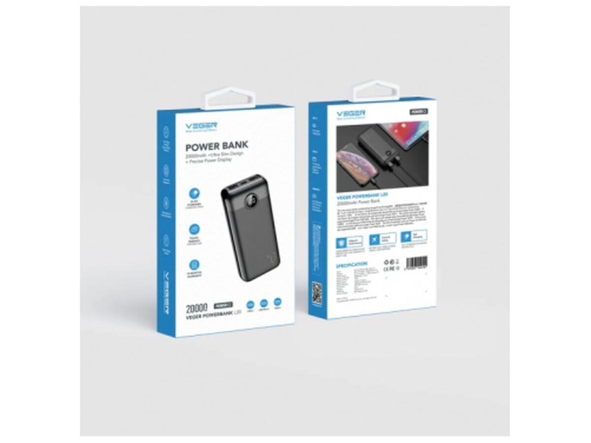 Батарея универсальная VEGER 20000mAh L20S 20W PD QC LCD black (6970453555362)