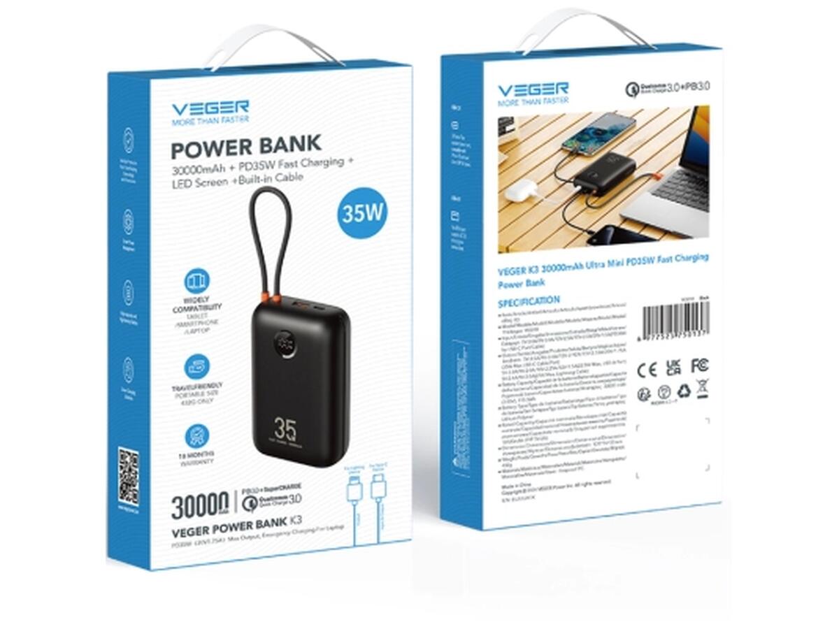 Батарея универсальная VEGER 30000mAh K3 35W PD QC3.0 black (6977525750137)