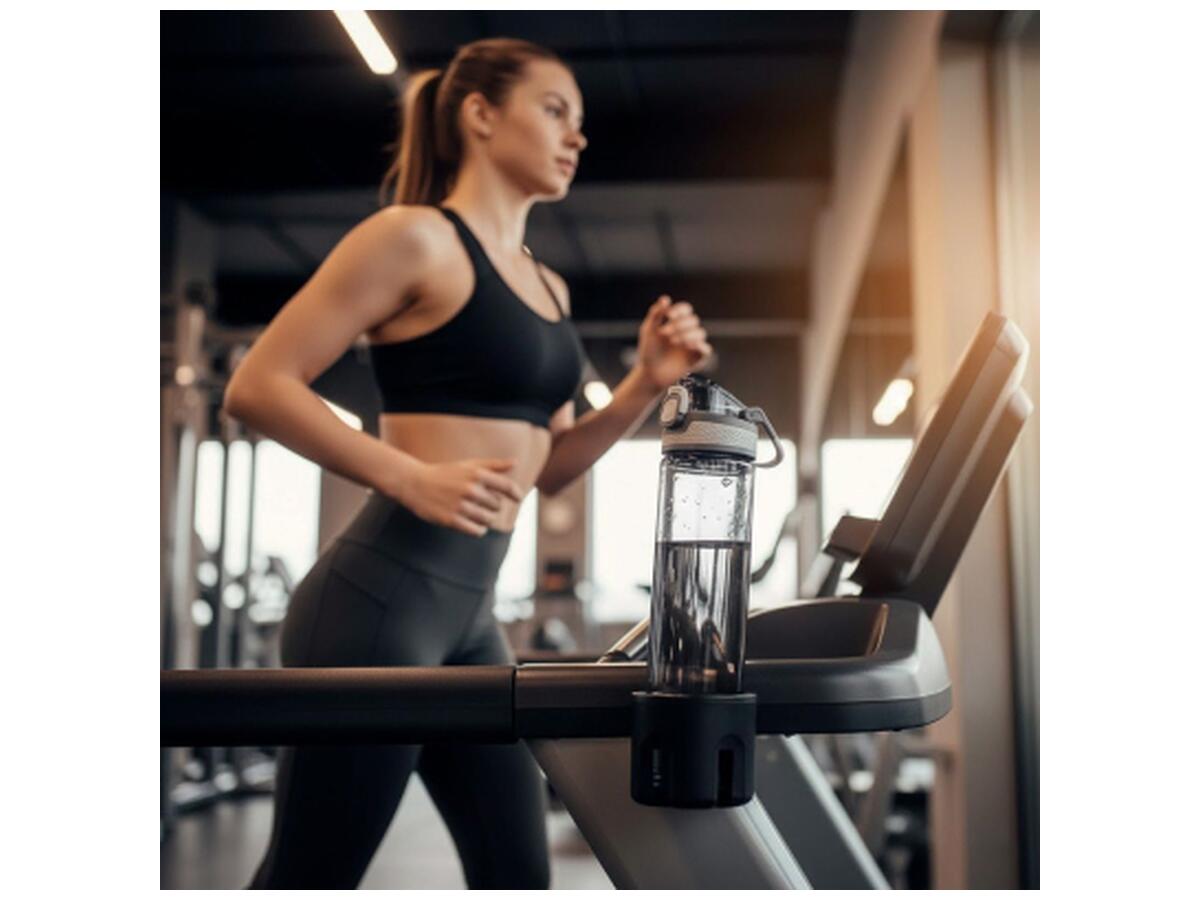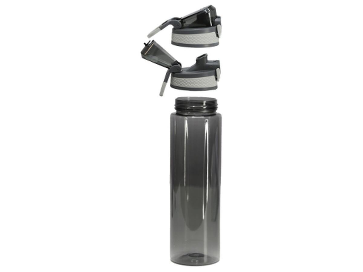 Крышка оснащена кнопкой с фиксатором, что предотвращает случайное открывание и обеспечивает защиту. Имеет ручку-карабин. Пластиковый носик с откидной защитной крышкой обеспечивает гигиеничность и удобство во время использования. TPR-вставки по бокам крышки обеспечивают надежное удержание и комфортное открывание даже мокрыми руками. Благодаря широкому горлышку бутылка легко моется и быстро наполняется.
