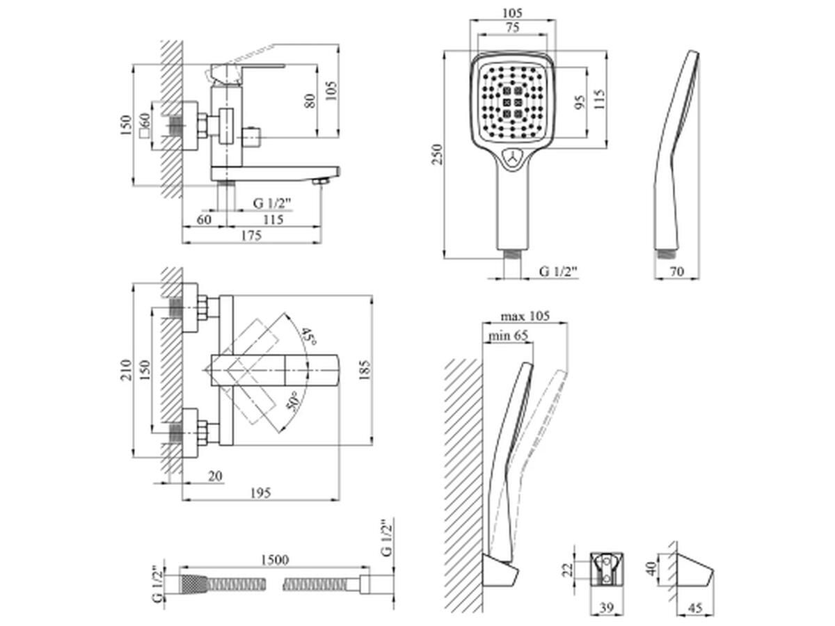 Комплект поставки: кронштейн для ручного душа