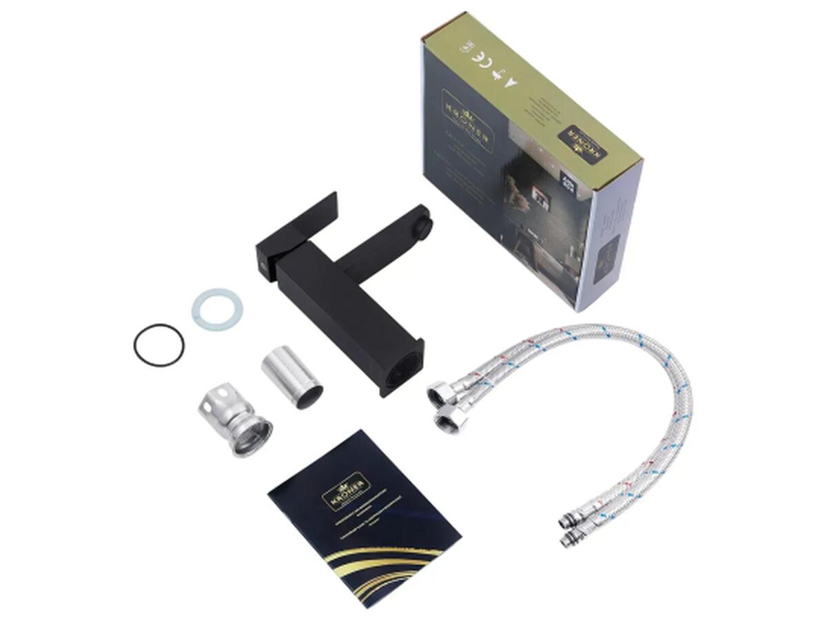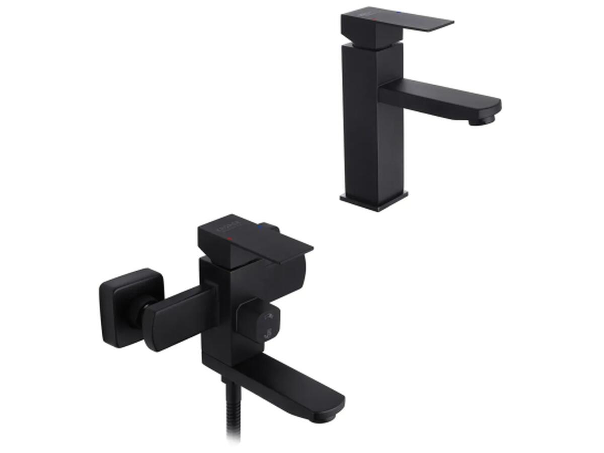 В комплект входят смеситель для умывальника и настенный смеситель для ванны с душем. Изготовлены из нержавеющей стали SUS304, что обеспечивает высокую прочность, коррозионную стойкость и долгий срок службы. Однорычажное управление позволяет легко и точно регулировать температуру и напор воды.