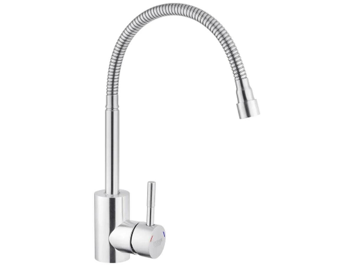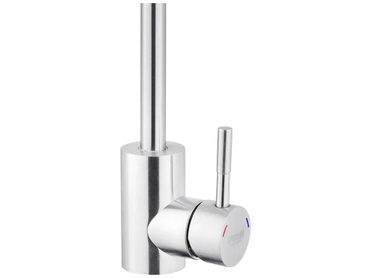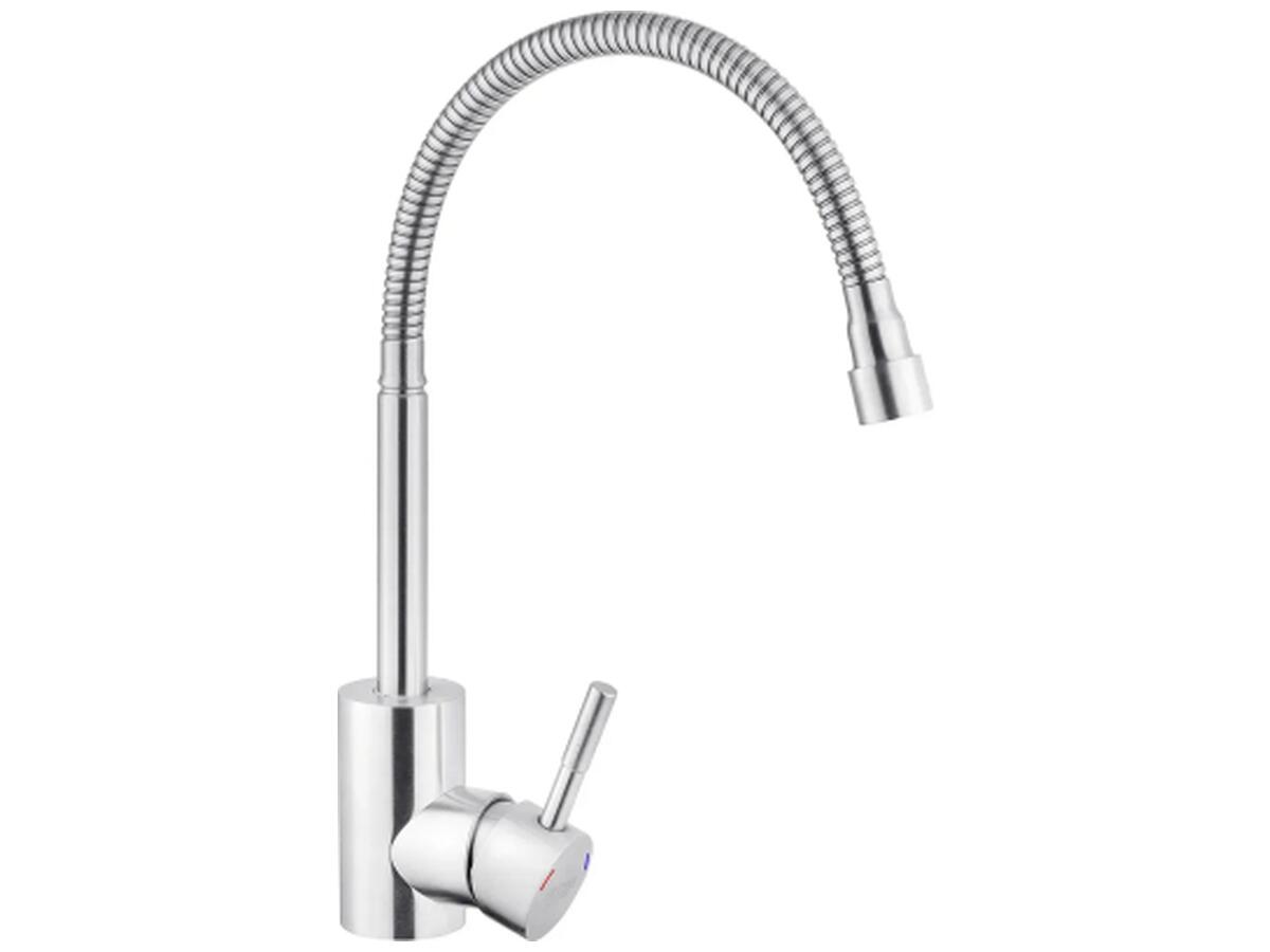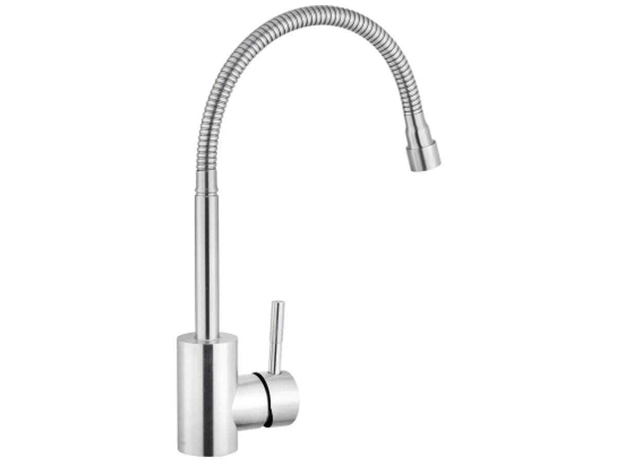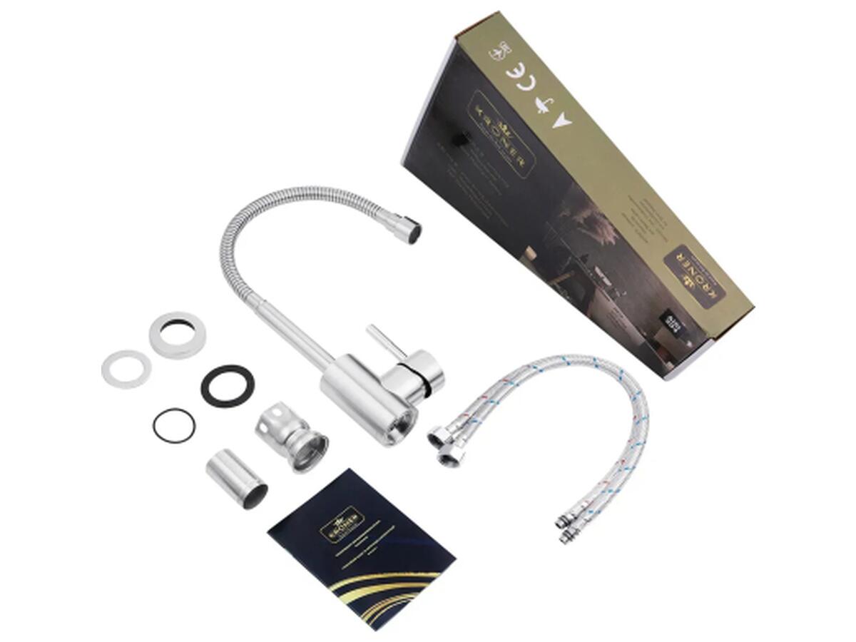 Смеситель для кухни с гибким изливом Kroner KRP Edelstahl Klassisch – ESG035-1 – идеальный выбор для вашей кухни. Изготовлен из нержавеющей стали, гарантирует прочность и долговечность. Обладает привлекательным брошированным никелевым цветом, что придаёт ему элегантность. Смеситель оснащён картриджным механизмом смешивания, позволяющим удобно регулировать температуру воды. Его уникальная U-образная форма излива обеспечивает удобство при наполнении посуды или мытье продуктов. Наслаждайтесь функциональностью и стилем смесителя Kroner.
