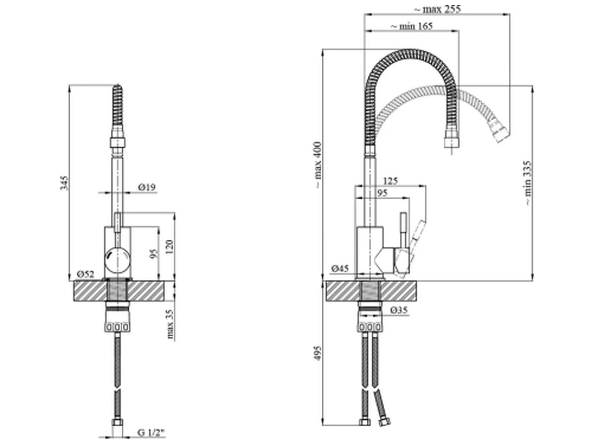 Шланги подключения: 495 мм