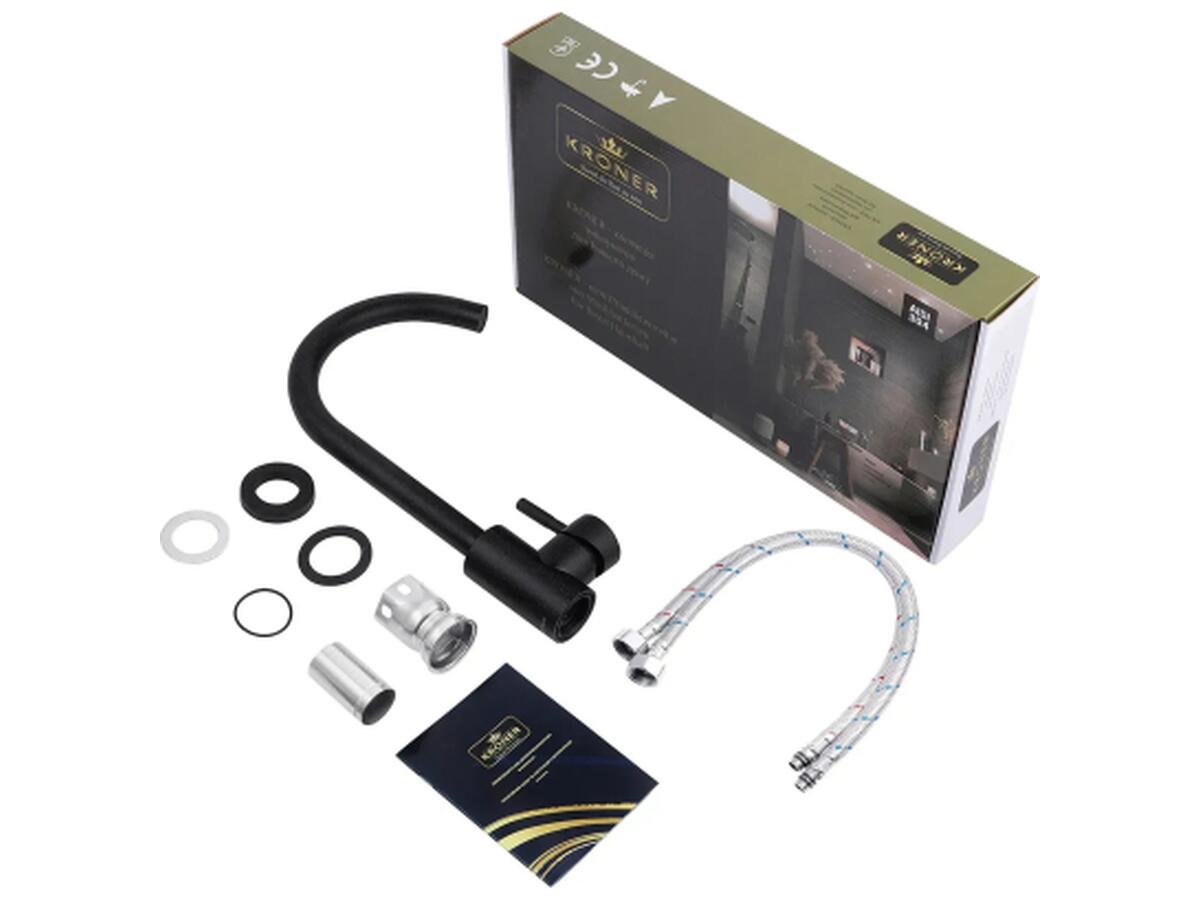 Кухонные смесители от Kroner – это немецкое качество, технология и надежность. Современный дизайн станет удачным дополнением интерьера кухни. Изготовленные из качественных материалов, не подвергающихся коррозии, легкость в сборке не доставит хлопот при монтаже и использовании. Имеют поворотный излив и устанавливаются на одно отверстие с подводом воды с помощью гибких шлангов М10х1/2". Шланги для подключения входят в комплект. Данная модель изготовлена из нержавеющей стали AISI 304.