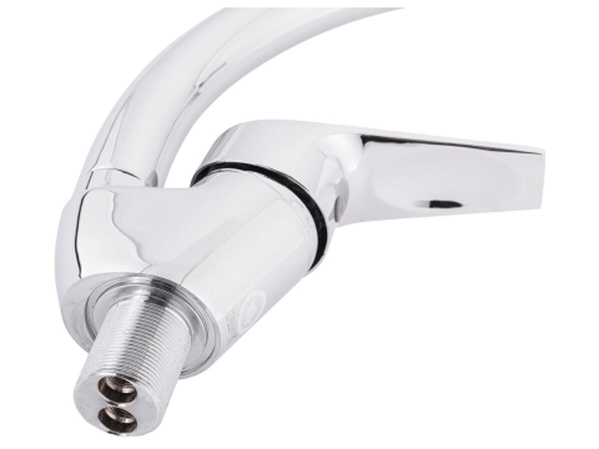 Современный однорычажный смеситель Kroner Odra-C032 — превосходное решение для вашей кухни. Изготовленный из прочного силумина с хромированным покрытием, он сочетает надежность и стильный внешний вид. Удобный поворотный излив длиной 23 см с формой J-образной лейки облегчает использование, позволяя свободно мыть посуду и наполнять емкости. Встроенный керамический картридж обеспечивает плавное регулирование температуры и расход воды до 13 литров в минуту. Монтаж выполняется врезным способом на одно отверстие, а гибкие шланги подключения длиной 500 мм упрощают установку. Этот смеситель станет функциональной и эстетичной частью кухни, обеспечивая комфорт и долговечность эксплуатации.