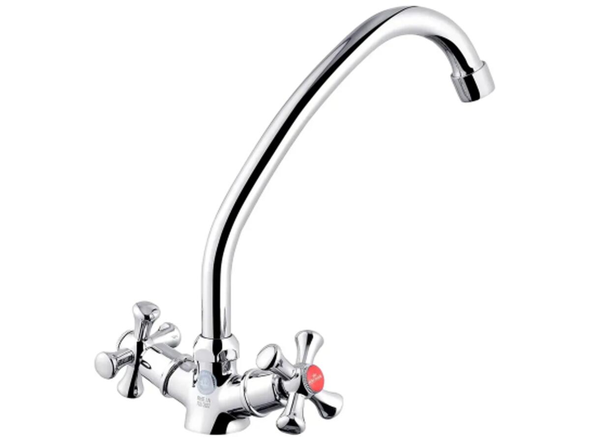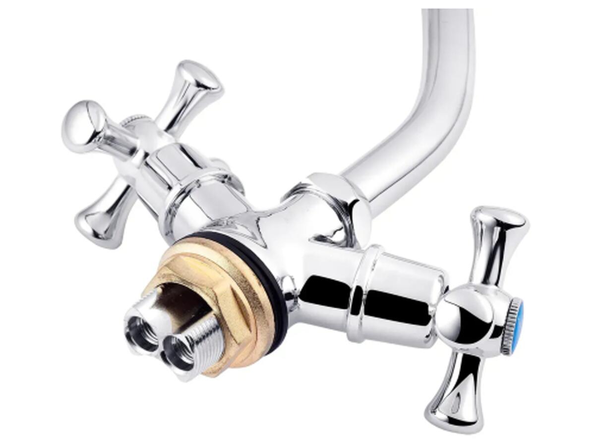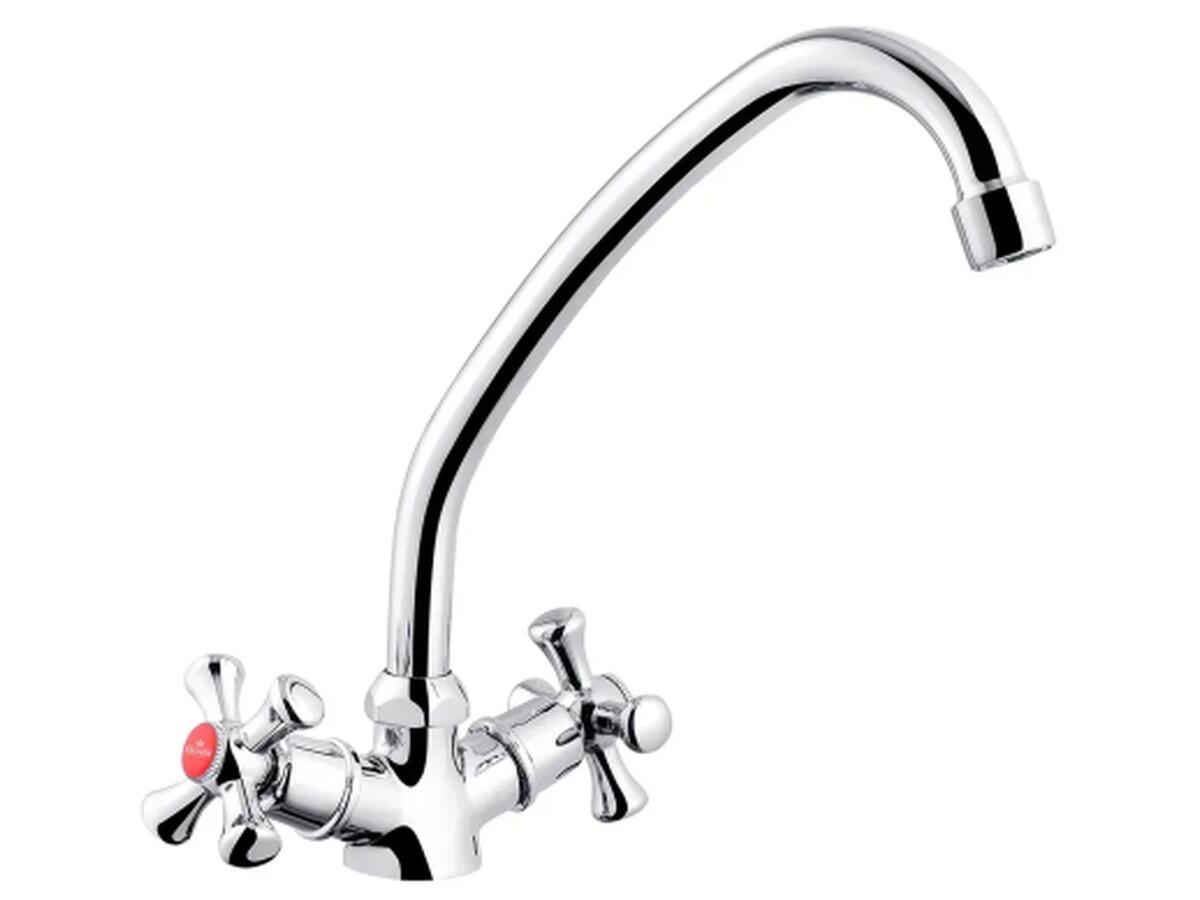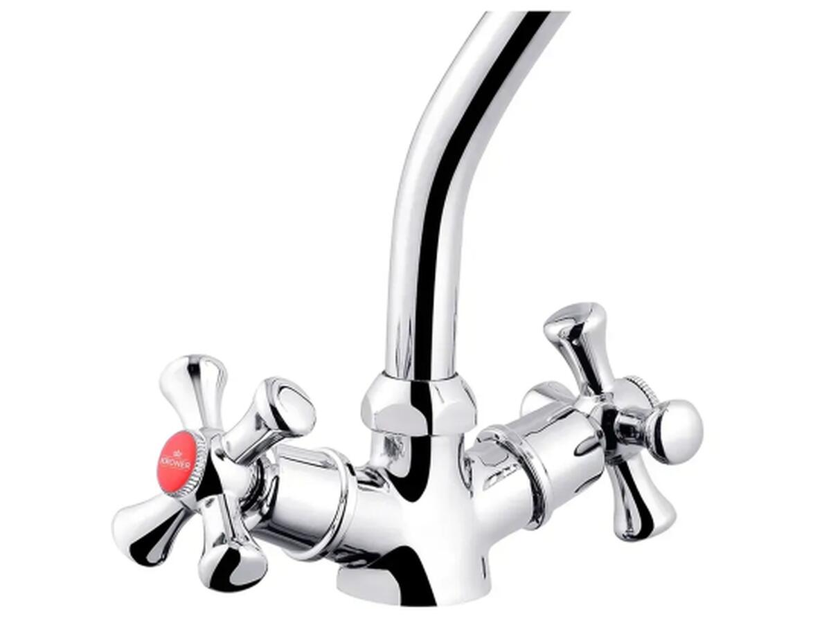 Двухвентильный смеситель Kroner Rhein-C030 выполнен из прочного силумина и отличается долговечностью. Благодаря хромированной отделке и глянцевой поверхности он гармонично вписывается в любой современный интерьер кухни.
