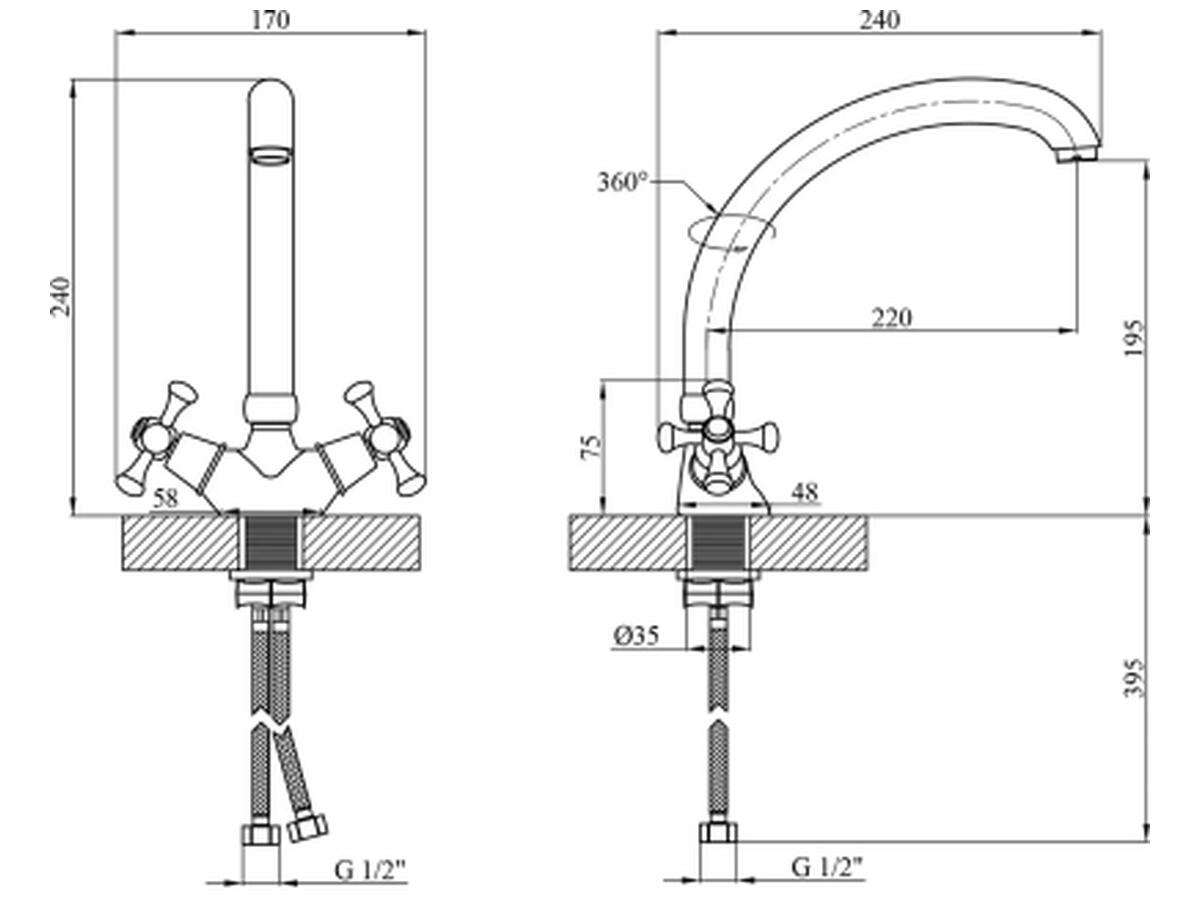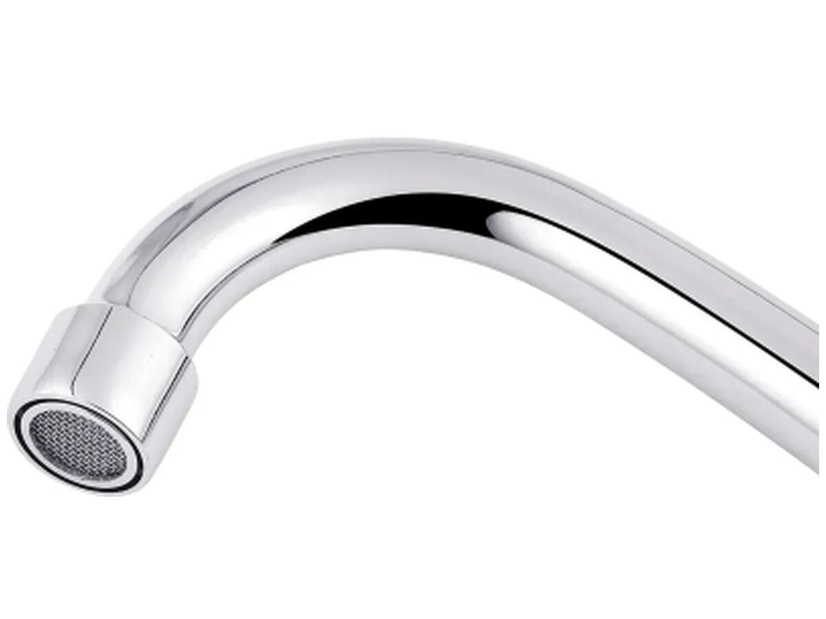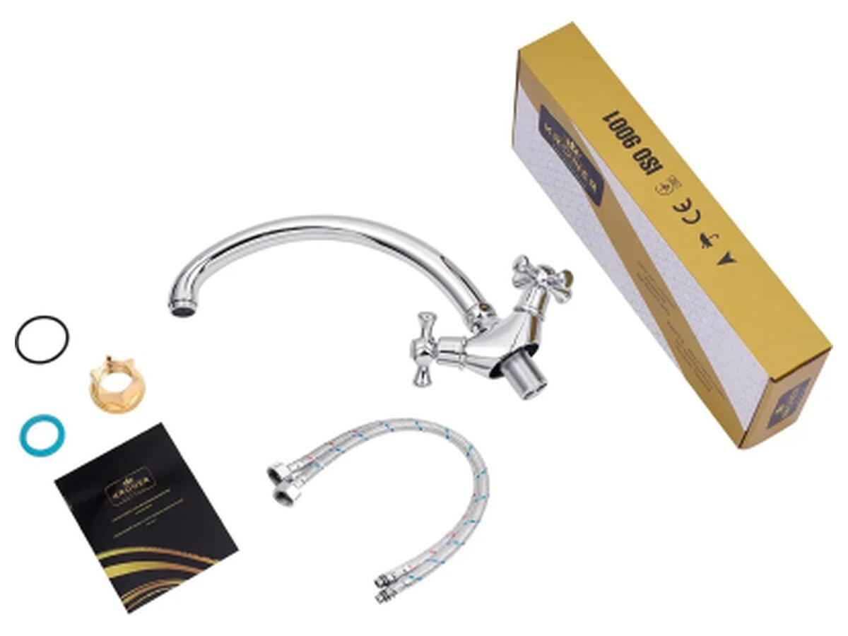 Смеситель для кухни Kroner KRM Rhein – C032 – идеальный выбор для вашей кухни. Изготовлен из высококачественного силумина, обеспечивает надежность и долговечность использования. Хромированный цвет и глянцевая поверхность придают ему стильный вид, вписываясь в любой дизайн кухни. Форма С-образного излива позволяет легко наполнять большие кастрюли и удобно мыть посуду. Механизм смешения на основе кран-буксы способствует точной регулировке температуры воды. Наслаждайтесь функциональностью и стилем смесителя Kroner.