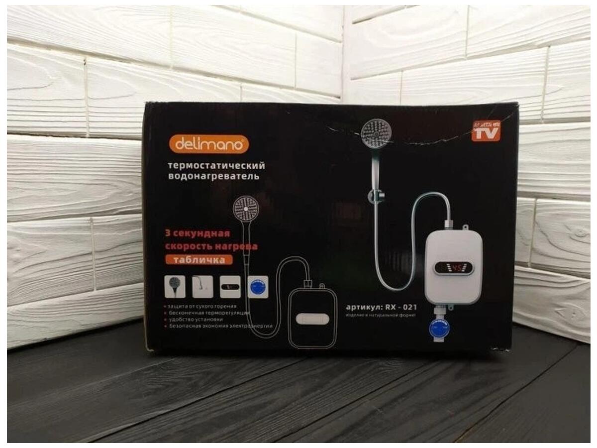 Проточныиu0439 водонагреватель Delimano RX-021 - это компактныиu0439 электрическииu0439 бойлер для мгновенного нагрева воды с душевоиu043c насадкоиu0439 и цифровым экраном. Идеальныиu0439 для душа, кухни, дачи, отелеиu0439 и офисов. Нагревает воду до заданноиu0441 температуры за считанные секунды, обеспечивая комфорт и экономию электроэнергии.