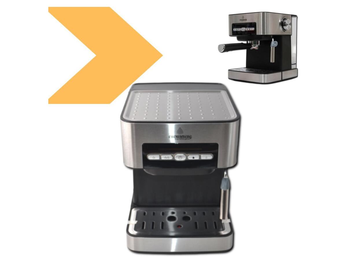 Ключевые слова: кофемашина, Crownberg, эспрессо, капучино, приготовление кофе, давление 15 бар, резервуар 1,6 л, кофе дома.