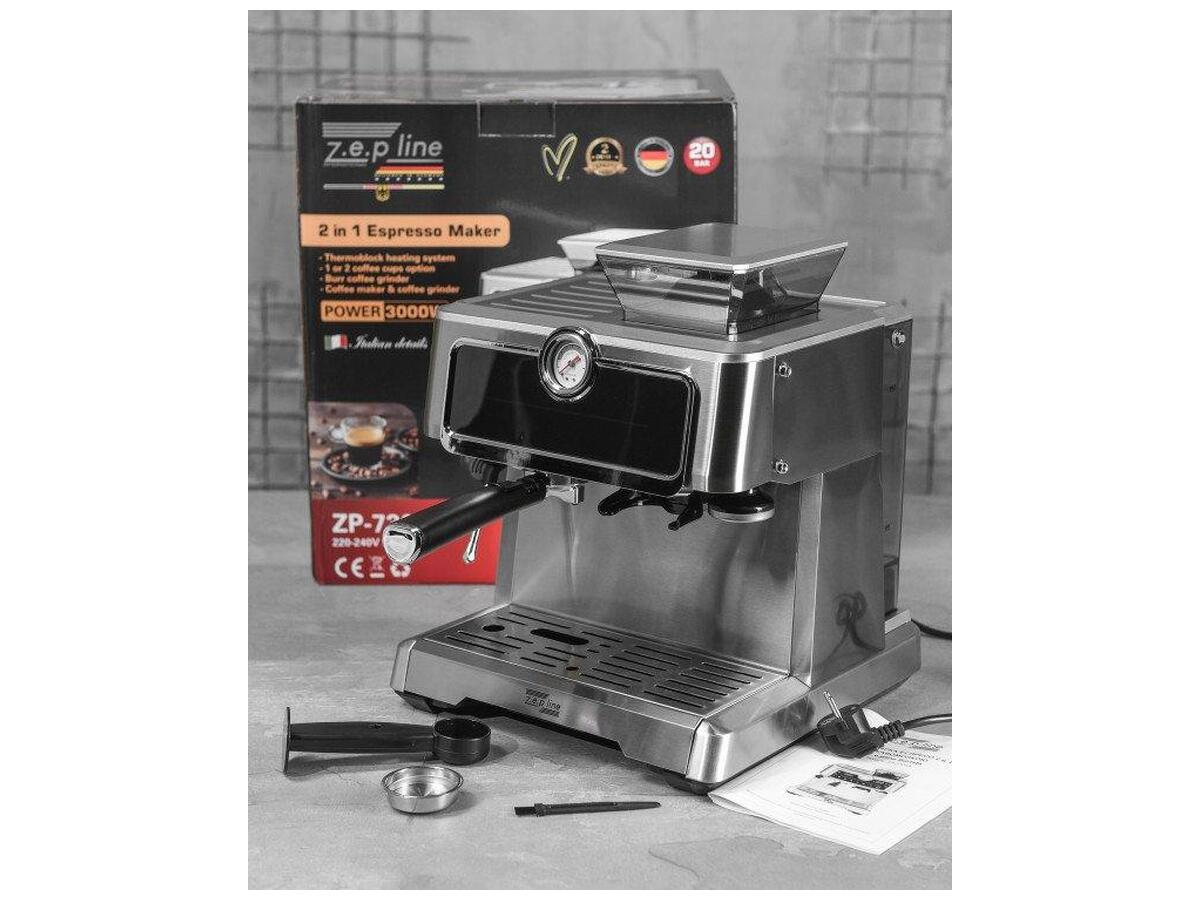 Главное: Кофеварка Zepline ZP-7305A - это универсальное устройство 2-в-1, которое сочетает в себе функции кофеварки и кофемолки. Это идеальный выбор для тех, кто хочет наслаждаться разнообразными кофейными напитками, такими как эспрессо, капучино, латте, латте макиато и кортадо, а также холодными кофейными напитками.
