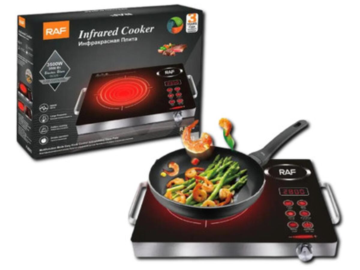 Инфракрасная плита RAF-8003 - современный кухонный прибор для быстрого и энергоэффективного приготовления пищи. Эта плита обладает множеством преимуществ, среди которых экономия электроэнергии, быстрое нагревание, безопасность использования, легкая очистка и компактные размеры.Характеристики плиты включают мощность 3500 Вт, диаметр конфорки 20 см, регулирование температуры в диапазоне 60-650°C, таймер до 180 минут и защиту от перегрева.Для использования инфракрасной плиты нужно установить ее на ровную поверхность, подключить к электросети, выбрать нужную температуру и время приготовления, а также использовать посуду с плоским дном.Рекомендуемые аксессуары для плиты включают сковороду для индукционных плит, кухонные перчатки, силиконовую лопатку и термометр для еды.Ключевые слова для данного прибора: инфракрасная плита, настольная электроплита, одноконфорочная плита с таймером, кухонная техника, энергоэффективное приготовление пищи, RAF-8003, бытовая техника для кухни.