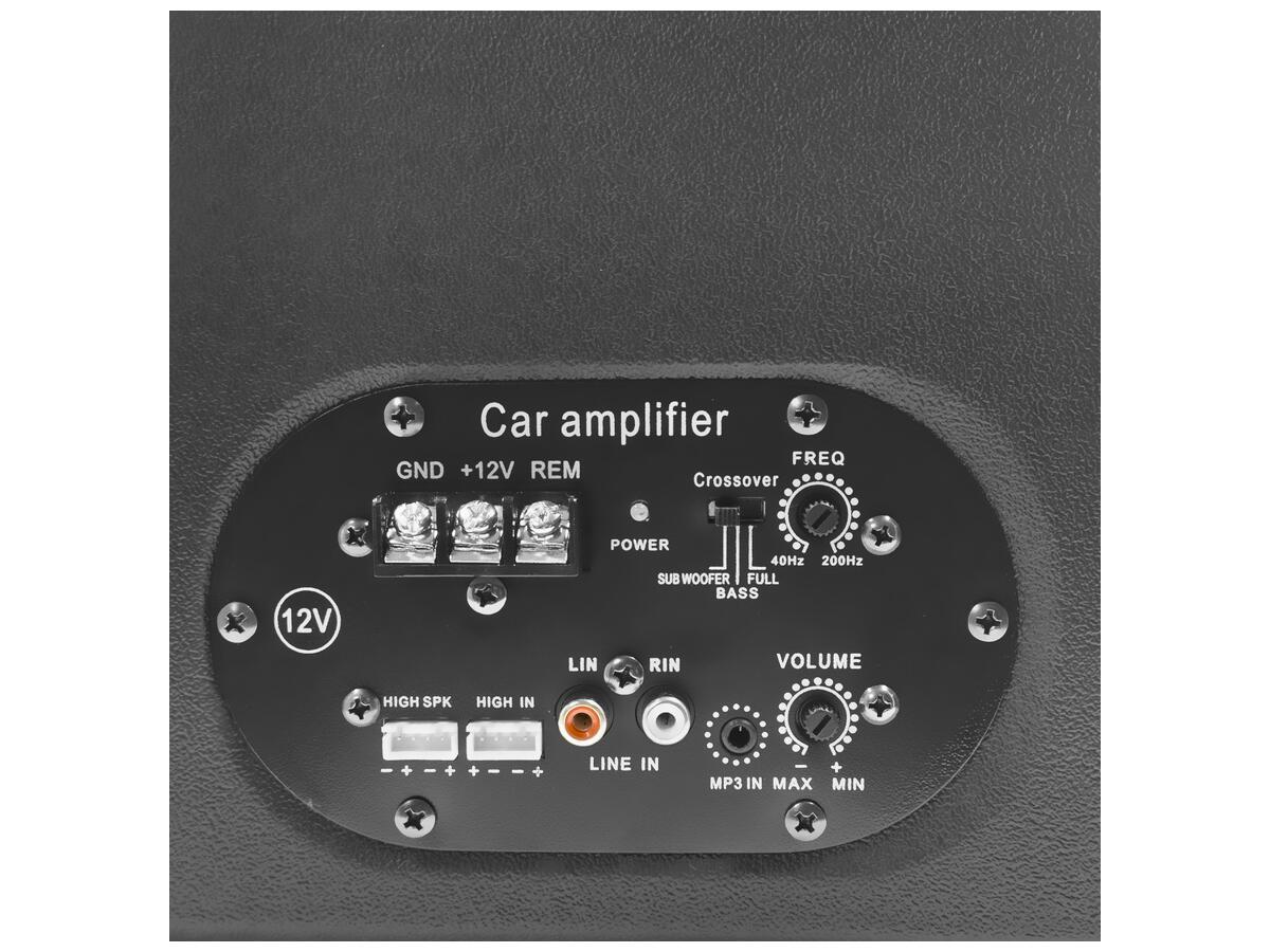 Інструкція з використання: Підключіть сабвуфер до аудіосистеми автомобіля за допомогою кабелю згідно з інструкцією, що йде в комплекті. Налаштуйте параметри звуку на свій смак і насолоджуйтеся якісним звуком.