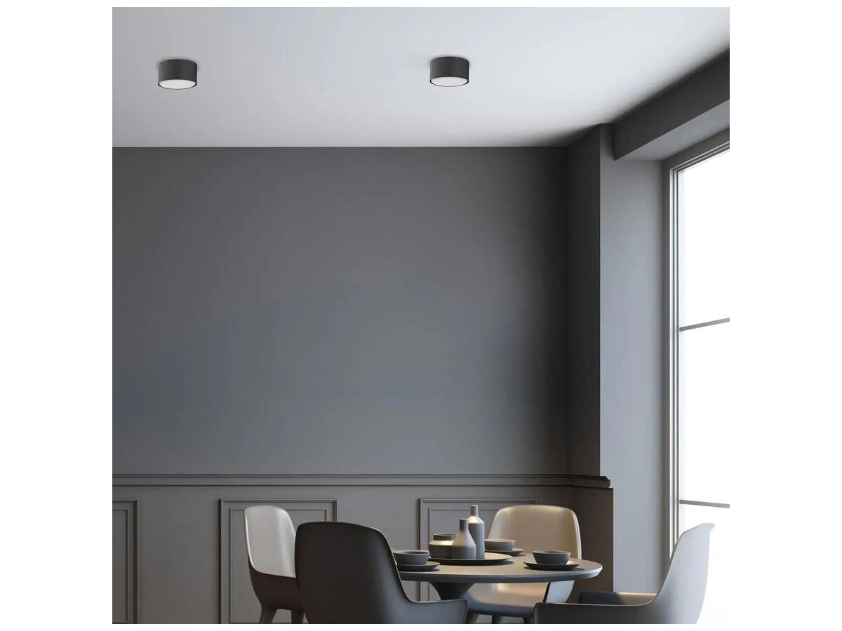 Этот стильный и компактный светильник изготовлен из прочного черного металла, что придает ему изысканный и современный вид. Благодаря своей форме цилиндра и размеру (диаметр 8 см, высота 4 см), он легко станет гармоничным элементом любого интерьера.