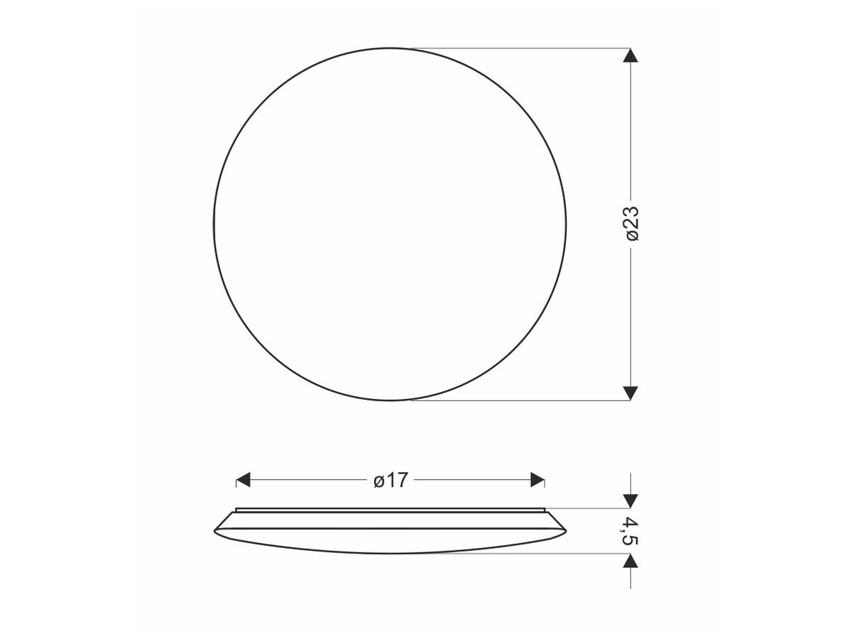 Світильник виконаний у стильному дизайні модерн і має круглу форму з діаметром 23 см. Корпус і плафон виготовлені з високоякісних матеріалів - пластику та акрилу, що забезпечує не тільки привабливий зовнішній вигляд, а й довговічність виробу. Вбудовані світлодіоди LED забезпечують яскраве і рівномірне світло з колірною температурою 4000К, що створює комфортну та затишну атмосферу в приміщенні.