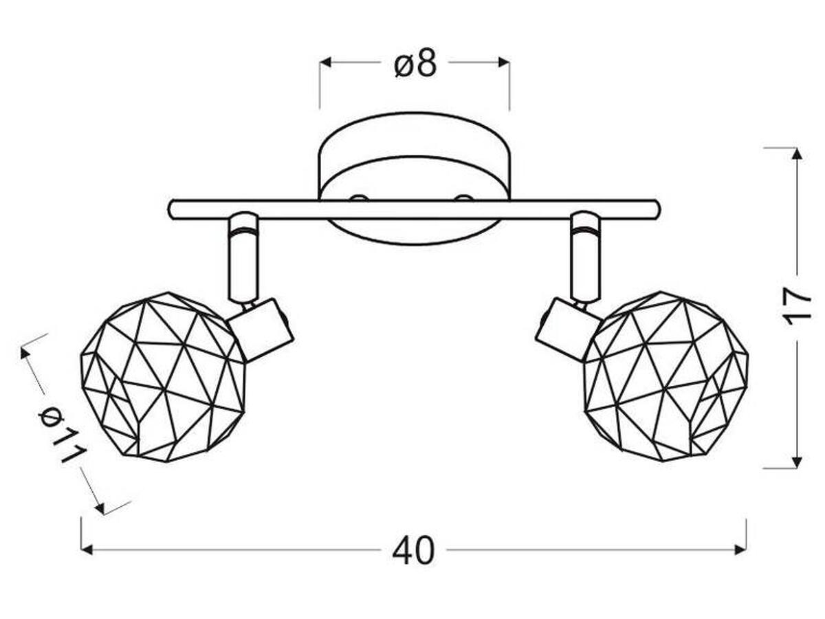 Устройство оснащено двумя держателями для ламп с цоколем E14, поддерживающими лампы до 40 Вт, что обеспечивает эффективное и приятное освещение. Компактные размеры (ширина 40 мм, диаметр плафона 11 мм, высота 17 мм) делают спот универсальным и легко интегрируемым в интерьер гостиной, кухни, коридора, спальни, офиса или коммерческих помещений.