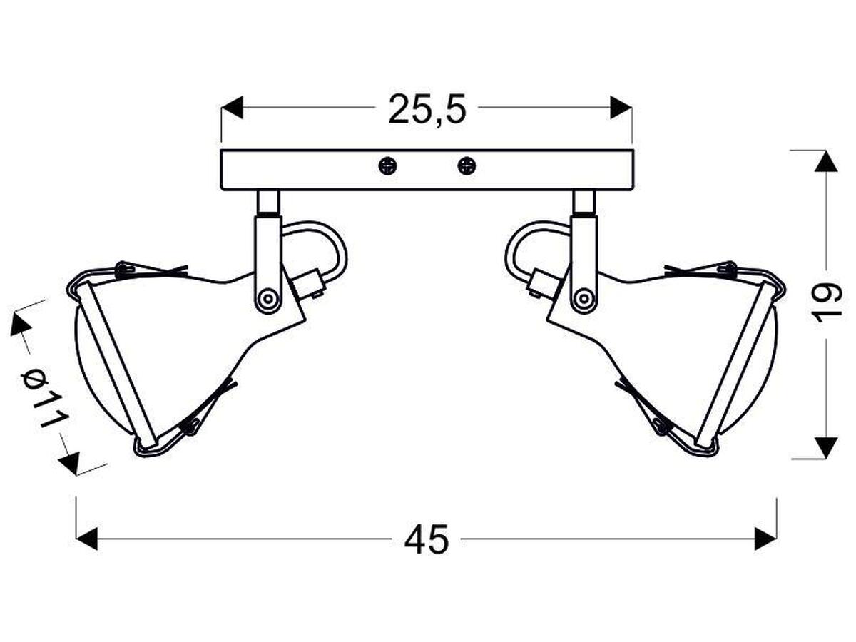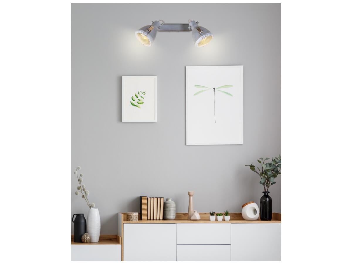 Устройство оснащено двумя патронами E14, позволяющими использовать светодиодные или энергосберегающие лампы мощностью до 40 Вт. Благодаря компактным габаритам спот легко впишется в ограниченное пространство, обеспечивая комфортное освещение в коридорах, гостиных, спальных комнатах, а также коммерческих зонах.