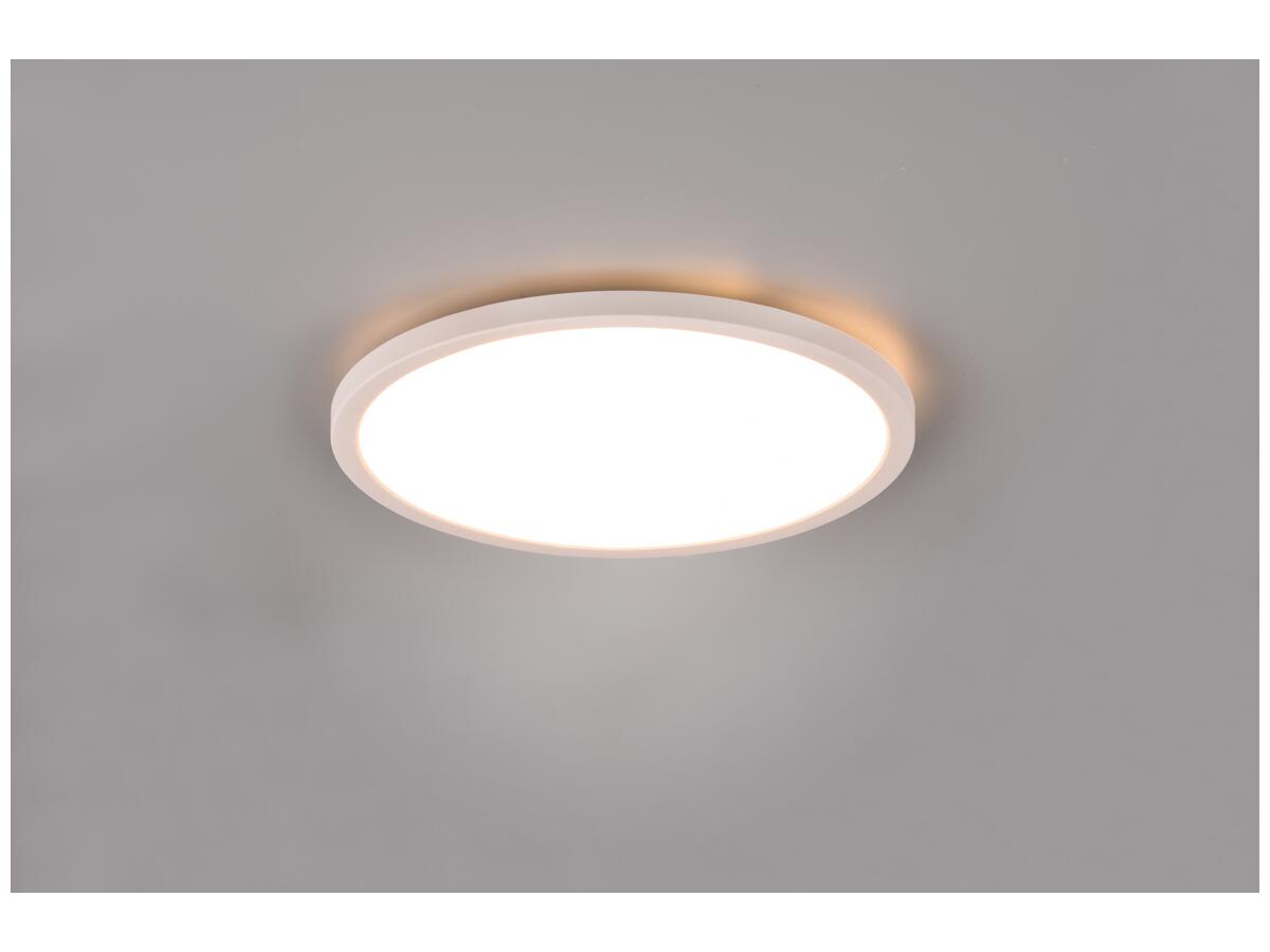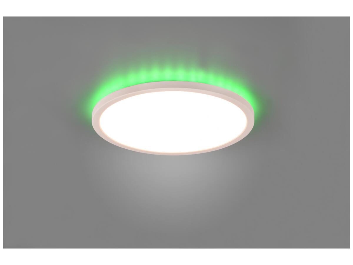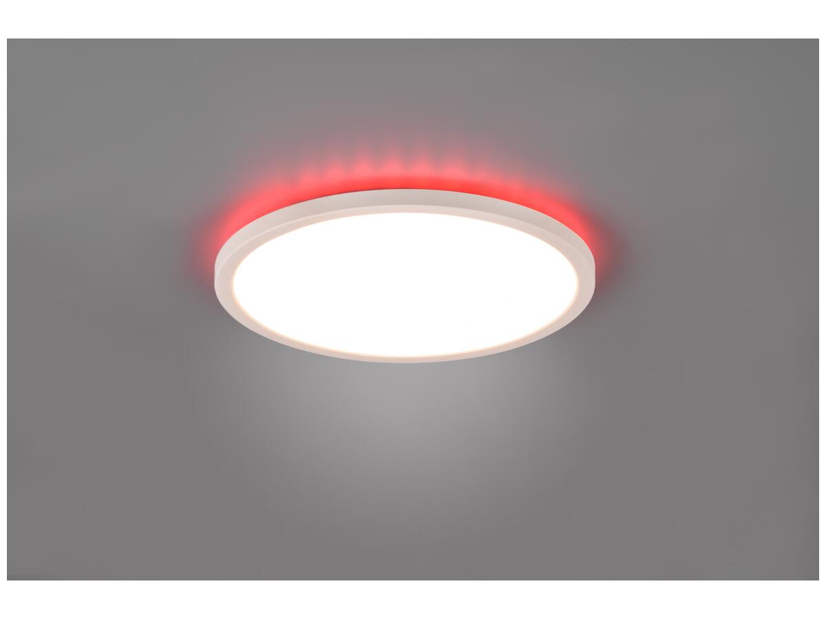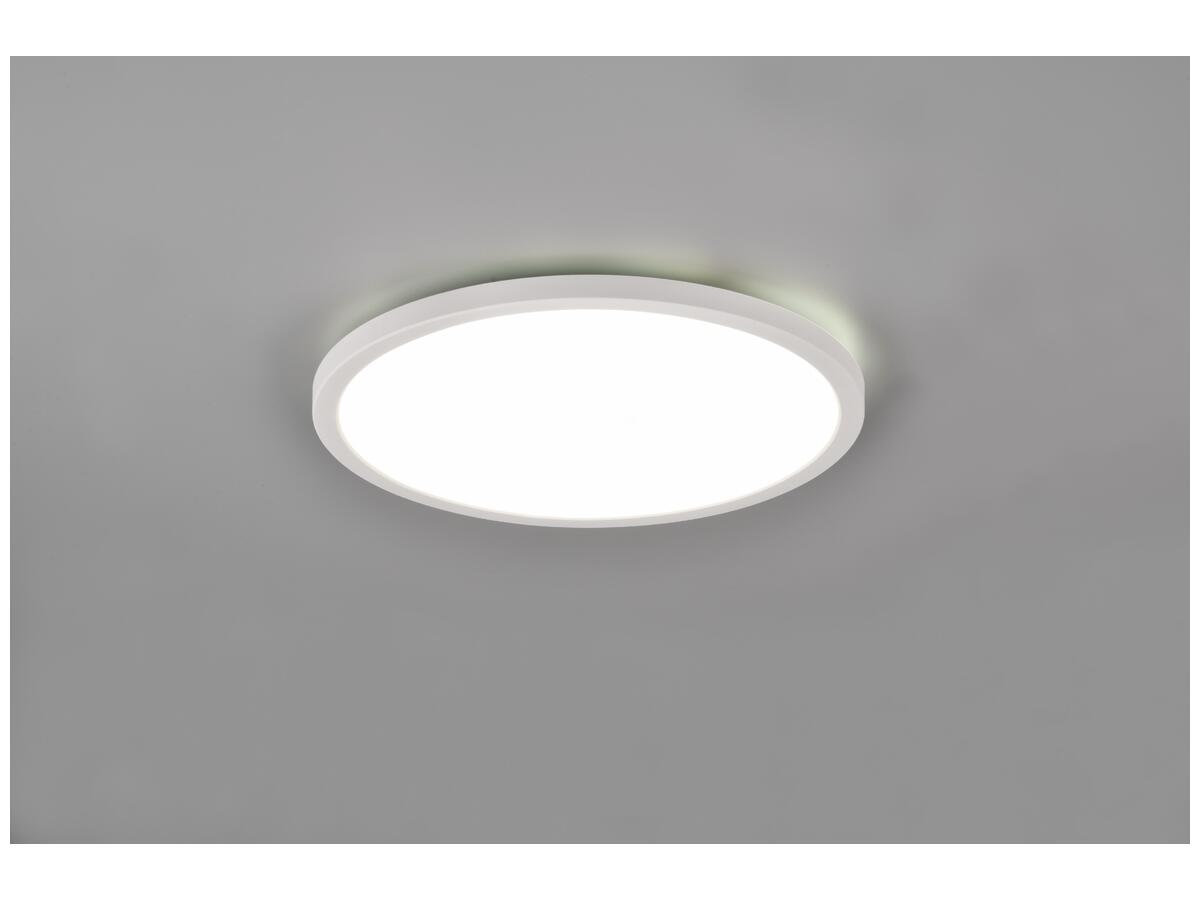 Оснащен пультом дистанционного управления, позволяющим регулировать световой поток до 2200 лм и менять цветовую температуру от теплого до холодного света (3000K–6500K), включая RGB-режимы. Изготовлен из прочного пластика белого цвета с классом защиты IP20, что делает светильник надежным и долговечным, со сроком службы светодиодов до 25 000 часов.