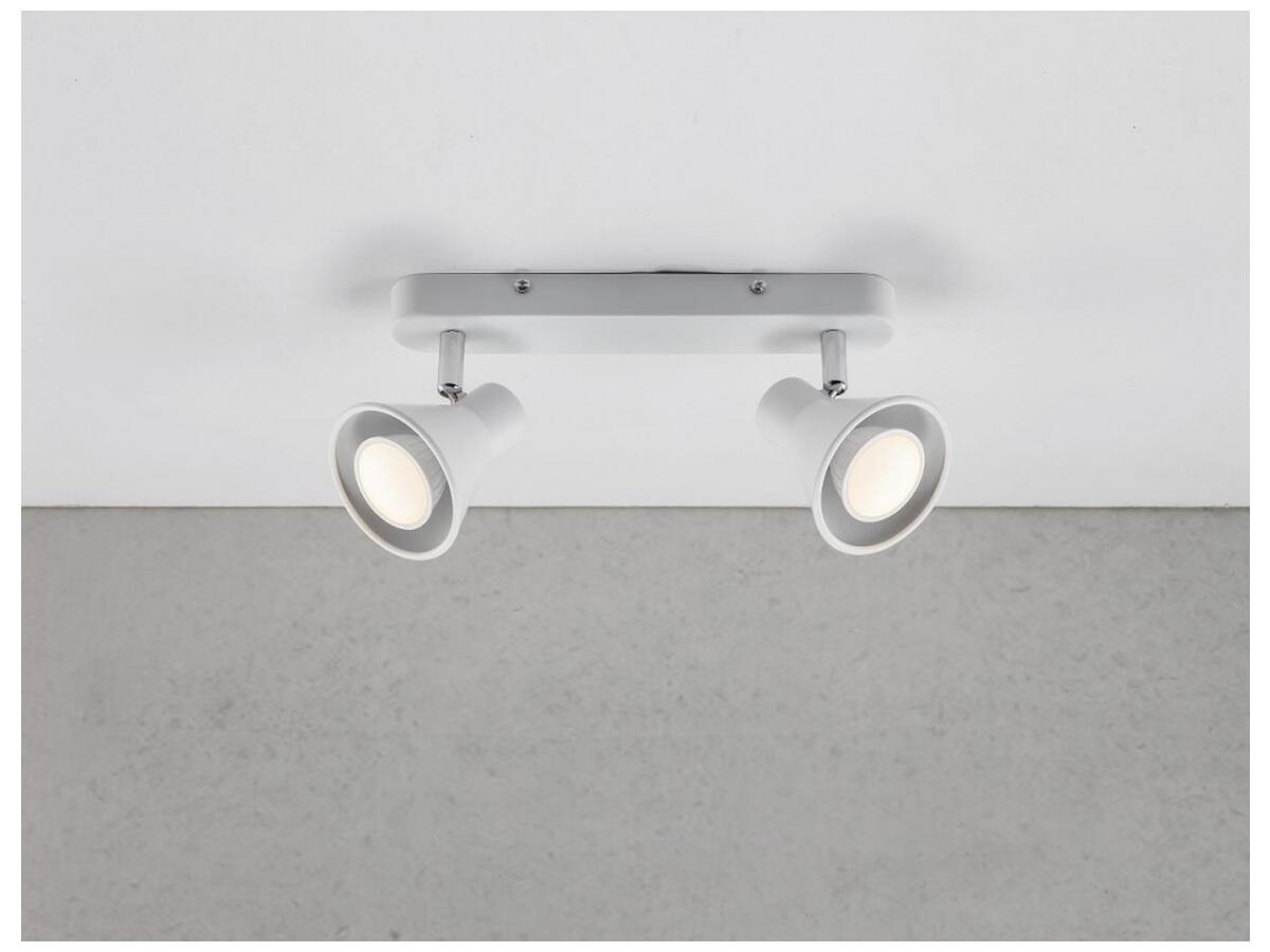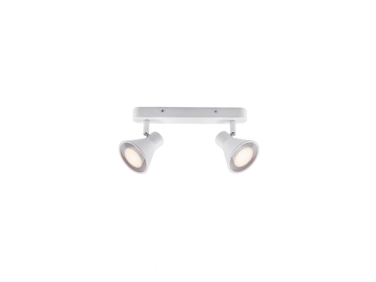Изготовленный из высококачественного металла, этот спот отличается стильным дизайном в стиле модерн. Его конусообразная форма и белый цвет корпуса гармонично впишутся в любой интерьер. Светильник оснащен двумя лампами мощностью 35 Вт каждая, что обеспечивает достаточное освещение для комфортной работы или отдыха.