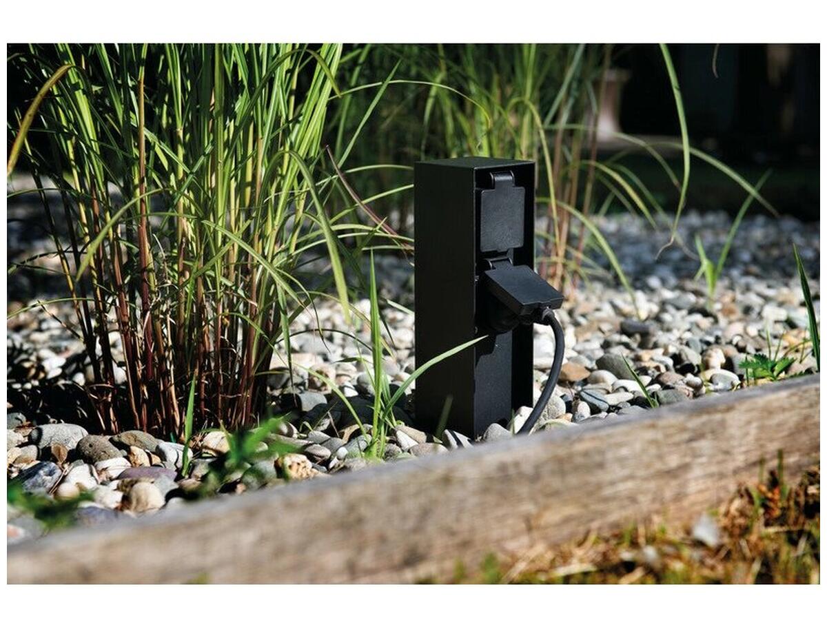 Корпус из прочного пластика с классом защиты IP44 гарантирует надежную работу на улице в различных погодных условиях. Встроенная розетка предоставляет возможность подключать разнообразные устройства прямо на месте, что значительно расширяет возможности использования данного светильника.