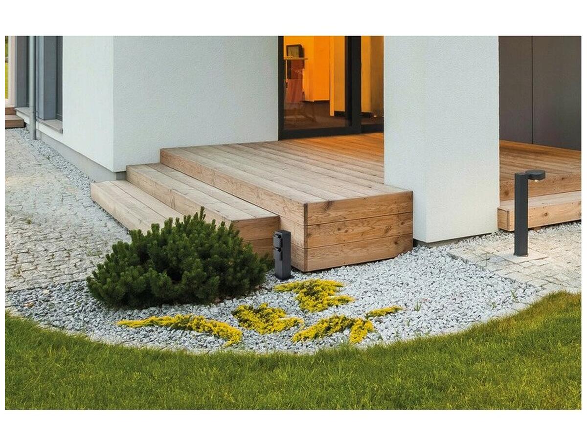 Компактные размеры столбика (высота 25 см, ширина и длина по 10 см) позволяют гармонично вписаться в любой ландшафтный дизайн, обеспечивая удобный доступ к электропитанию на улице. Устройство идеально подходит для подключения садовой техники или зарядки различных приборов.