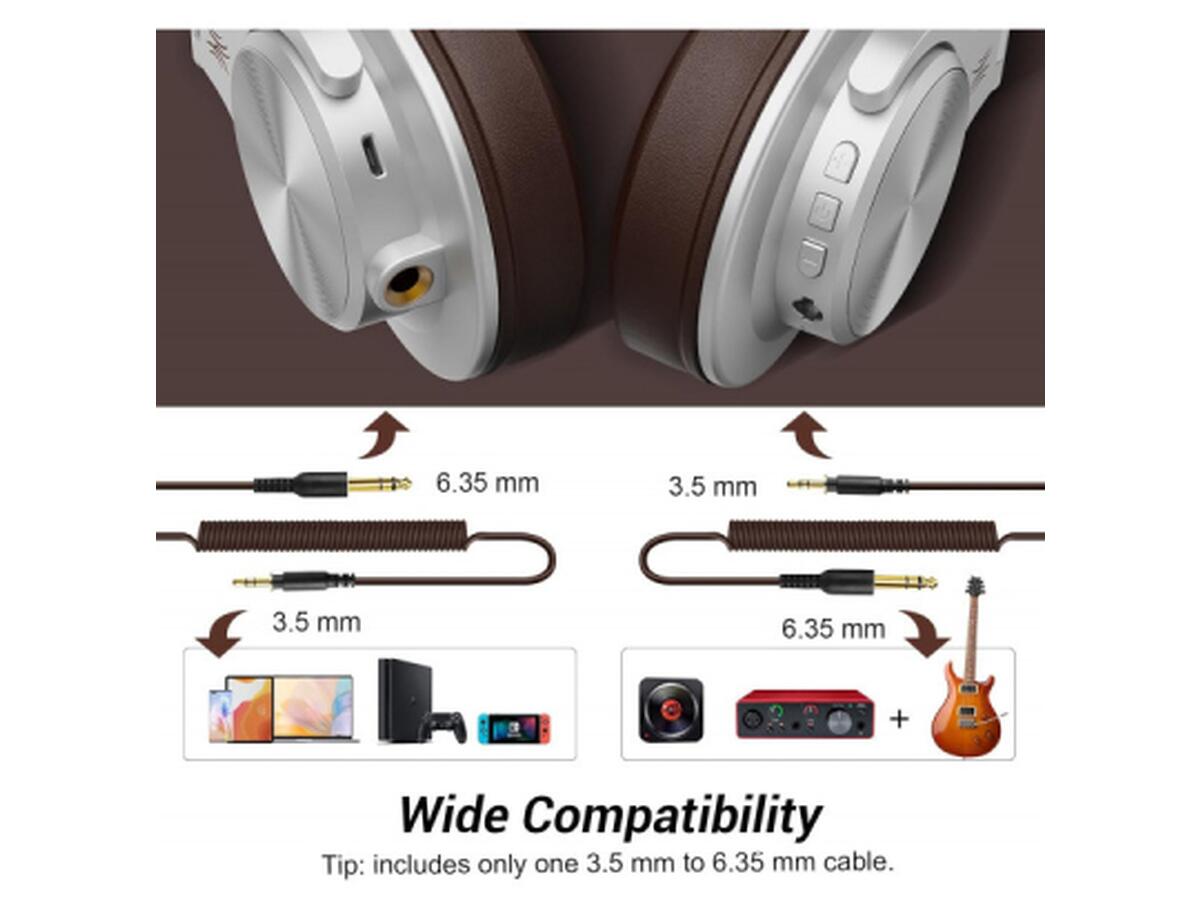 Эти полноразмерные наушники оснащены комбинированным подключением через Bluetooth и кабель с разъемами 3,5 мм и 6,35 мм, что обеспечивает универсальную совместимость с разными устройствами. Закрытая акустическая конструкция позволяет максимально изолировать внешний шум, а динамические излучатели воспроизводят широкий диапазон частот от 20 до 40000 Гц с высокой чувствительностью в 110 дБ.