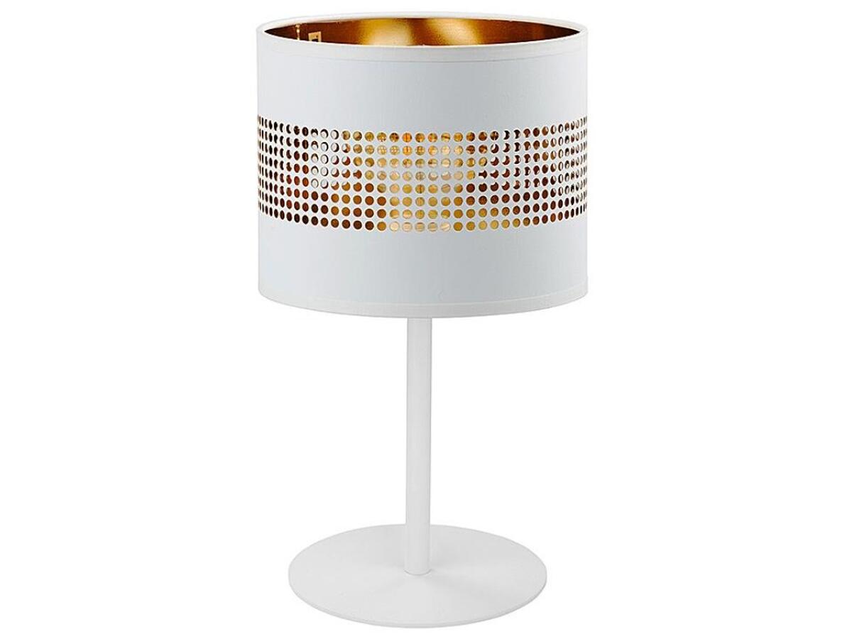 Настільна лампа TAGO WH TK-Lighting 5056 - це стильний і функціональний освітлювальний прилад, який ідеально впишеться в сучасний інтер'єр. Її лаконічний дизайн у стилі модерн поєднує в собі білий колір плафона та золотисті елементи, створюючи гармонійний та елегантний образ.