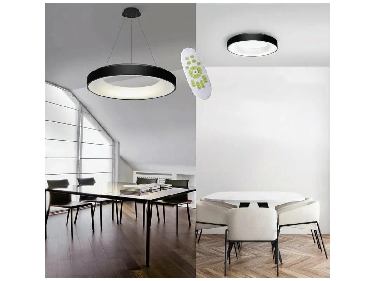 Світильник виконаний у стильному дизайні чорного кольору та має циліндричну форму з діаметром 45 см. Він оснащений вбудованими світлодіодними лампами потужністю 40 Вт, які забезпечують яскраве та рівномірне освітлення. Завдяки наявності димера, ви можете регулювати інтенсивність світла залежно від ваших потреб.
