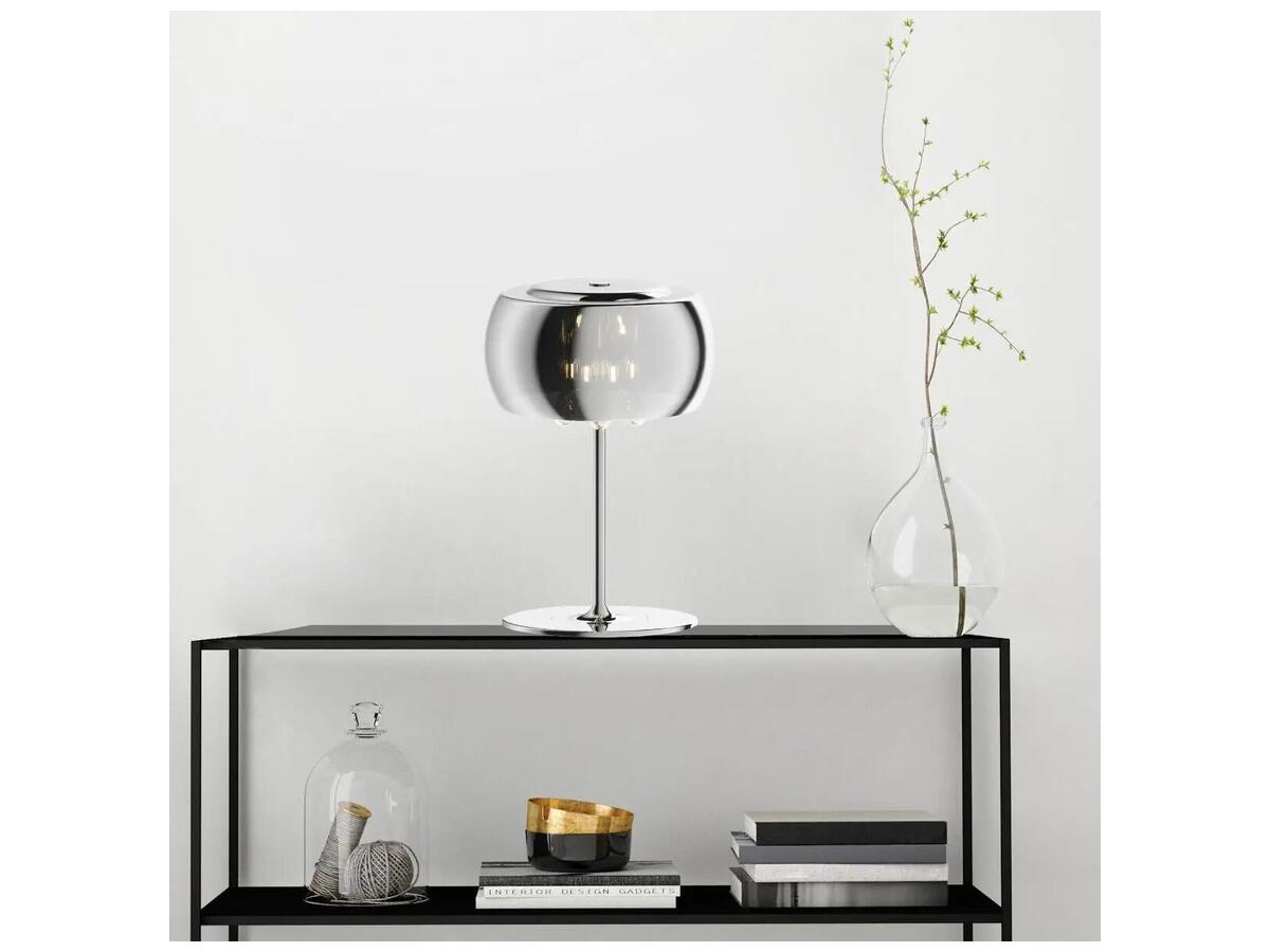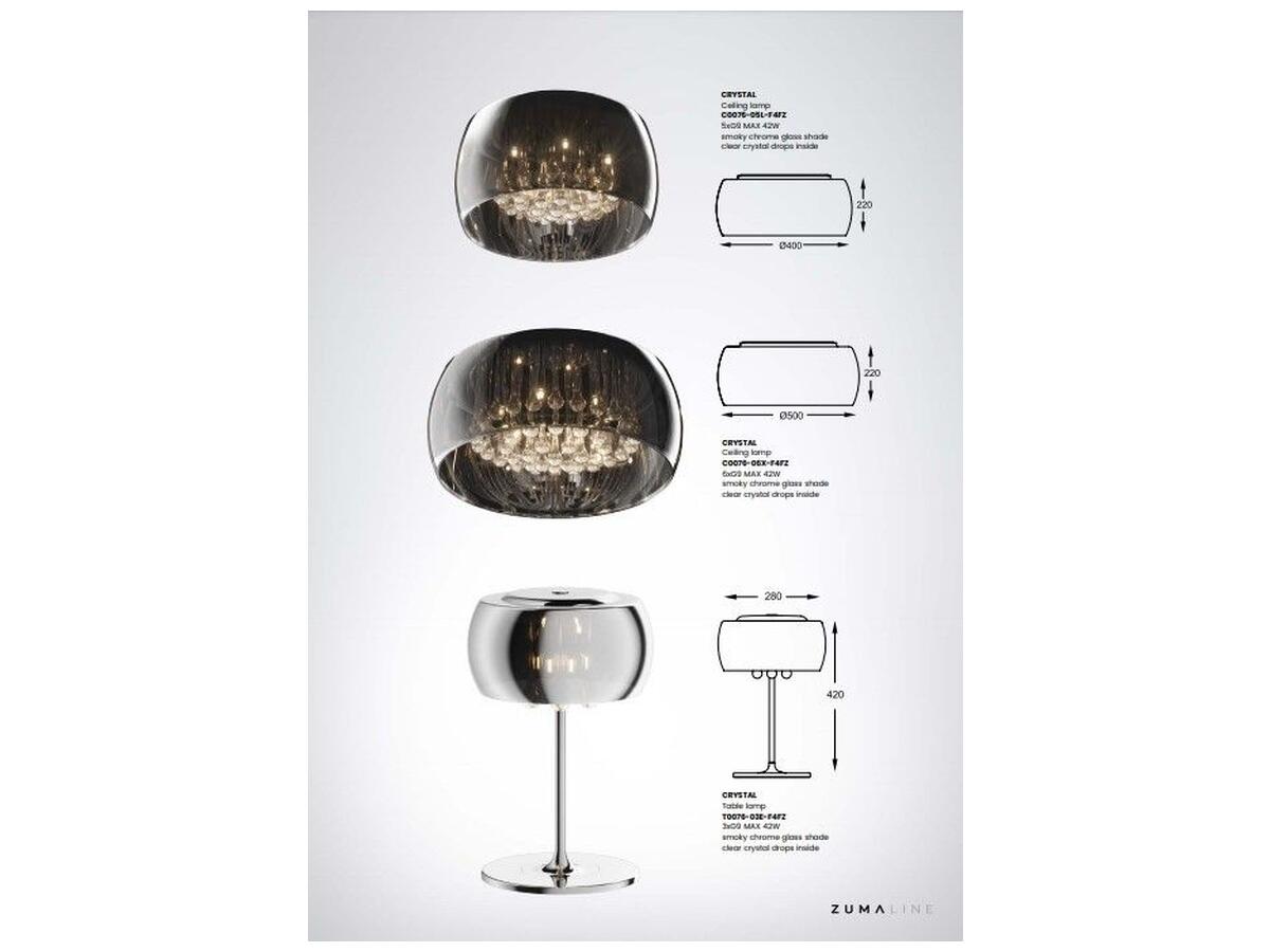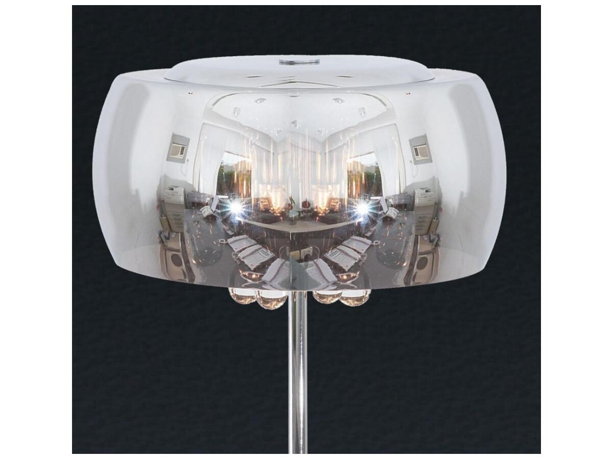 Прозрачный стеклянный плафон в сочетании с хромированным металлическим основанием подчеркивают современный дизайнерский подход и добавляют изделию изящества. Украшения из кристаллов придают дополнительный блеск и роскошь.