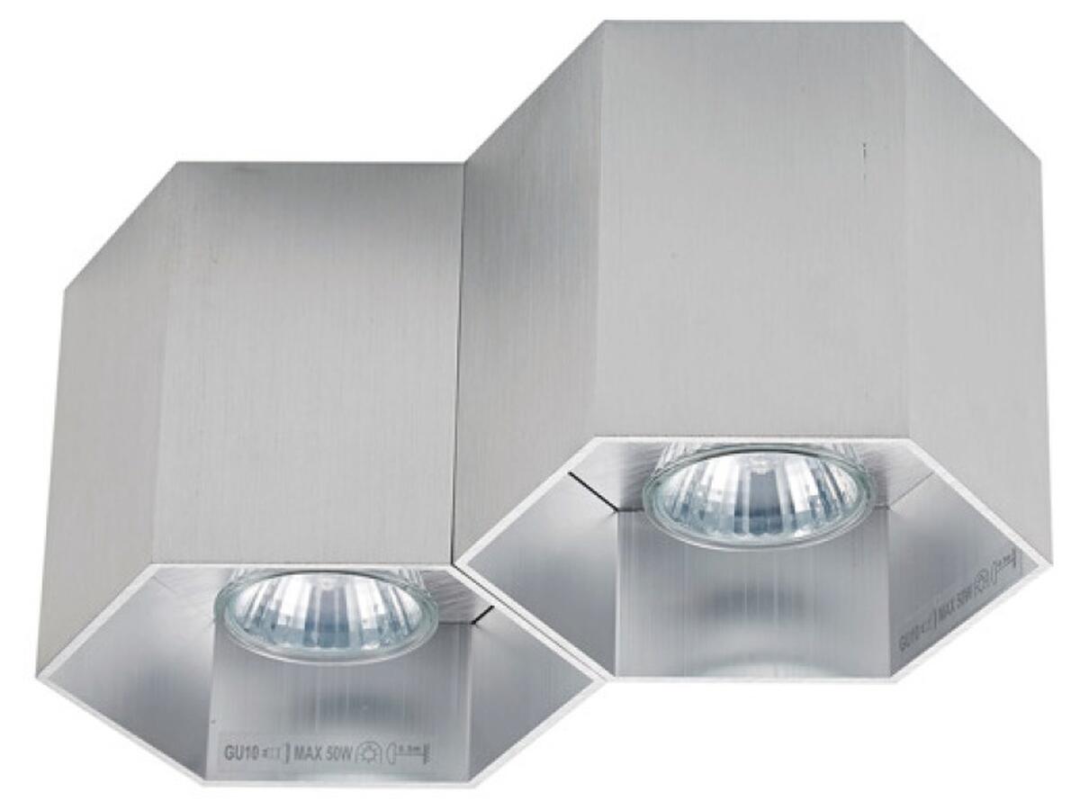 Современный точечный светильник из коллекции Polygon от бренда ZUMALINE отличается строгим многоугольным дизайном и металлическим корпусом серебристого цвета. Устройство оснащено двумя светодиодными лампами с цоколем GU10, каждая из которых поддерживает мощность до 50 Вт, обеспечивая яркое и экономичное освещение.